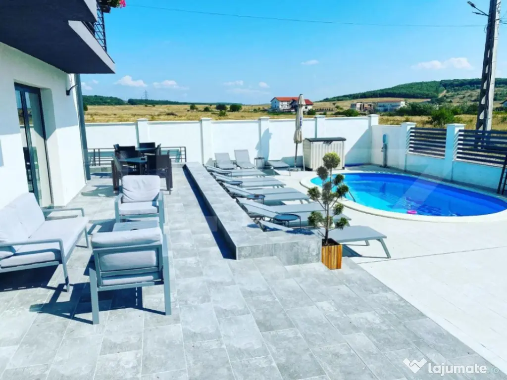 Bllitz imobilare va ofera spre vanzare o pensiune in Baile Felix.Pensiunea este noua construita in anul 2023 si este mobilat utilat lux.Pensiunea este construita pe un teren de 850 mp.Curtea este amenajata cu piscina,loc de joaca pentru copii si zona de grill.Pensiunea are 19 dormitoare fiecare cu baie proprie.La parter e receptia cu sala de mese si bucataria. Pensiunea este ideala pentru investitie fiindca gradul de ocupare era 100% fiind construita langa Strandul Apollo.Daca va doriti o afacere la cheie atunci doar un telefon ne desparte pentru a merge la vizionare.Va asteptam! Cod ofertă / ID BLITZ: P95329 Id intern: P95329 Număr niveluri imobil: 3 Număr Băi: 20 Nr. locuri parcare: 5-10