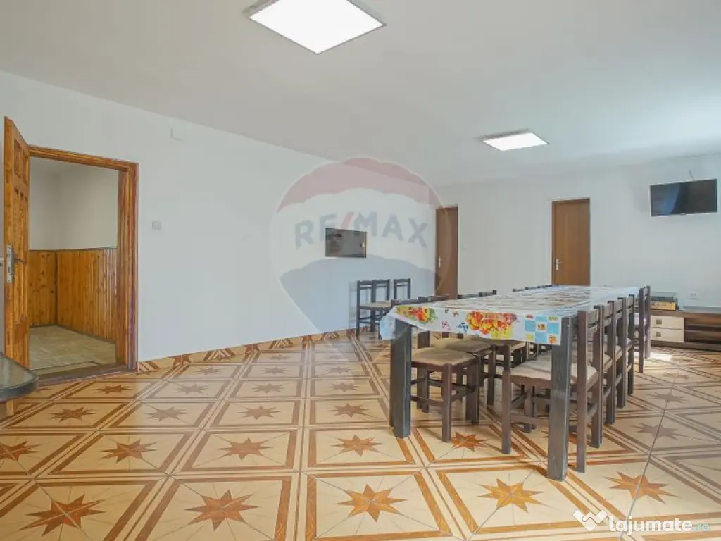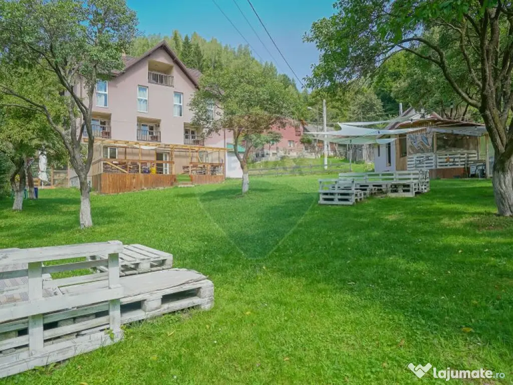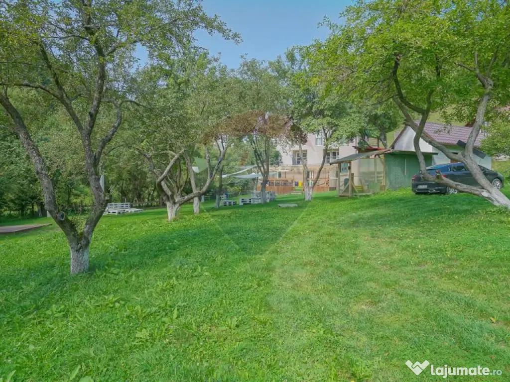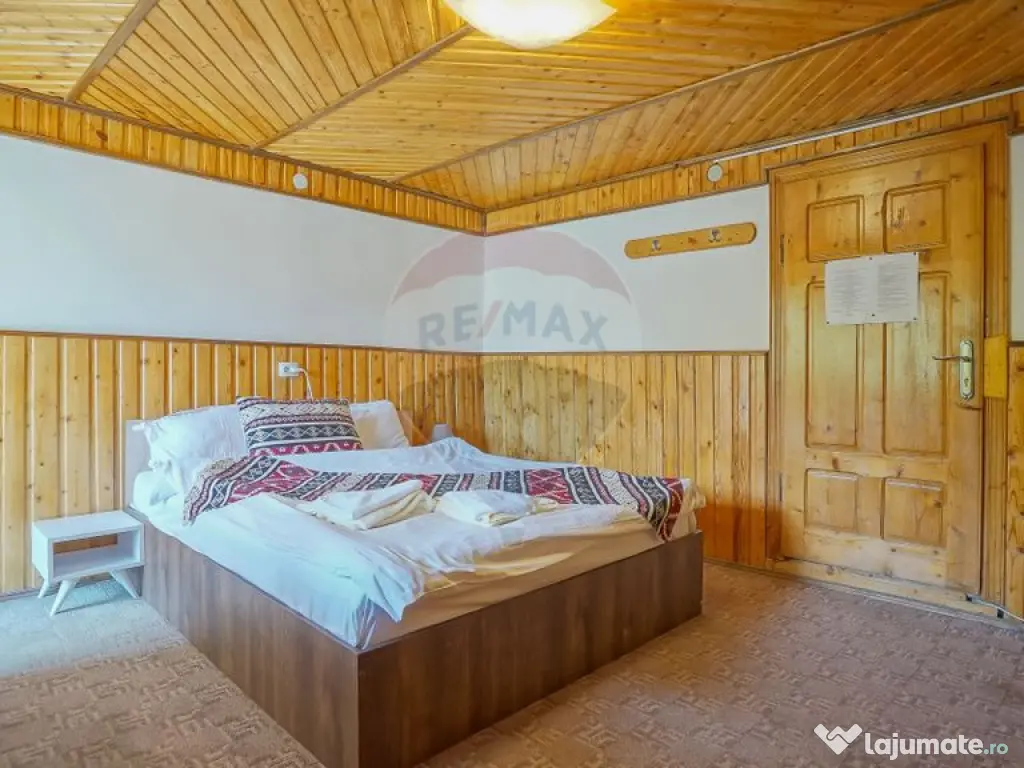 Într-una dintre cele mai pitorești și vizitate zone turistice din România, Moieciu de Jos, vă prezentăm o proprietate cu potențial real de transformare într-o afacere de succes în domeniul ospitalității. Amplasată pe un teren generos de 1.137 mp, această proprietate este pregătită să devină următoarea pensiune de referință din zonă. Date cheie ale proprietății: - Regim de înălțime: Demisol + Parter + 2 Etaje + Mansardă - Suprafață construită totală: 602 mp - Suprafață utilă: 475 mp - Construită în 2000, renovată complet în 2013; parterul a fost renovat parțial în 2020 - Structură mixtă: beton (fundație și parter) și lemn (etajele superioare + mansardă) Capacitate de cazare: - 10 camere duble - 2 camere triple - 2 apartamente la mansardă - majoritatea unităților oferă o priveliște frumoasă către Masivul Bucegi și Piatra Craiului, garantând o experiență memorabilă pentru turiști. Spații comune și zonă de relaxare: - Parterul oferă un spațiu generos de living, sală de mese și bucătărie, ideal pentru socializare, jocuri de societate sau un mic party între prieteni. - Terasa exterioară completează perfect atmosfera, oferind un cadru natural unde te poți bucura de liniște și aer curat. Curtea este frumos amenajată, cu două zone de grătar, un mic bar rustic și spații de relaxare care prind viață în sezonul cald: șezlonguri, hamac și vedere directă către natură. Oaspeții vor aprecia posibilitatea de a petrece timp afară, într-un cadru intim și prietenos. Poziționare excelentă: Situată la doar 5 km de Castelul Bran, proprietatea beneficiază de acces facil la principalele atracții turistice din zonă – un avantaj major pentru dezvoltarea afacerii. Și poate cel mai important atu – atmosfera locului: Moieciu de Jos este o zonă liniștită, cu aer curat și peisaje autentice, unde turiștii se bucură de plimbări relaxante în weekend, la pas sau cu bicicleta, pe traseele naturale din împrejurimi. Este un loc unde oaspeții revin nu doar pentru cazare, ci pentru liniște, natură și reconectare cu simplitatea. De ce merită investiția? Zonă turistică în plină dezvoltare, cu flux constant de vizitatori români și străini Ideală pentru o afacere de familie în turism – cu potențial de branding și fidelizare Spațiu generos, bine compartimentat, cu vedere de excepție Locație liniștită, frecventată de turiști pentru plimbări și relaxare Spații interioare și exterioare perfecte pentru activități de grup Curte amenajată cu zone de grătar, bar, șezlonguri și hamac Posibilitate de operare imediată sau personalizare suplimentară Această proprietate este ideală pentru cei care doresc să lanseze sau să extindă o activitate în turism, cu infrastructura pregătită, atmosfera creată și poziționare strategică în inima naturii! Contactează-ne pentru detalii sau vizionare. Moieciu de Jos este locul unde o investiție devine experiență, iar oaspeții devin clienți fideli! Număr niveluri imobil: 2 Număr Băi: mai mult de 3 Posibilitate parcare: Da Nr. locuri parcare: 5-10 Curent Apă Încălzire Demisol