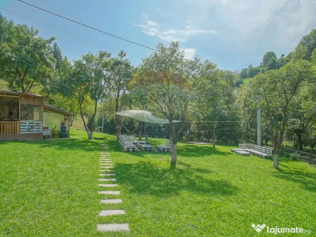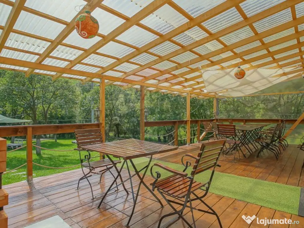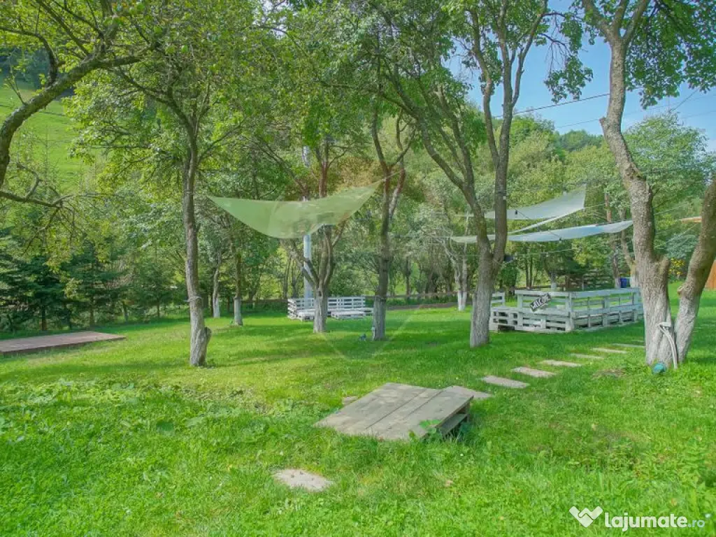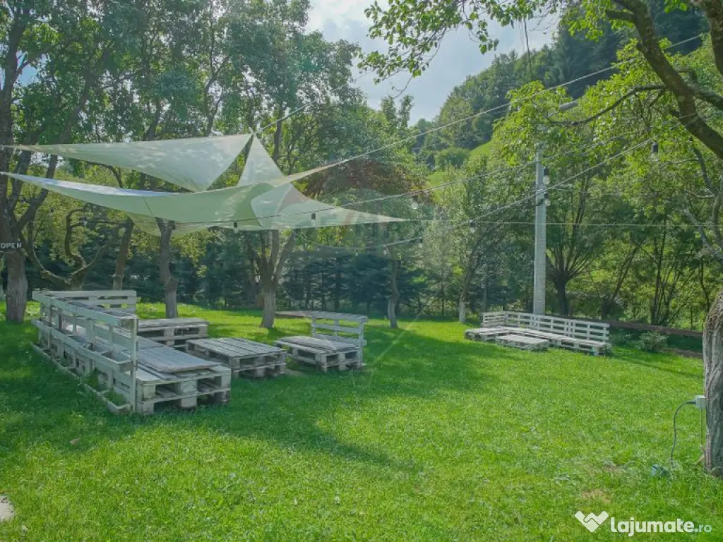 Într-una dintre cele mai pitorești și vizitate zone turistice din România, Moieciu de Jos, vă prezentăm o proprietate cu potențial real de transformare într-o afacere de succes în domeniul ospitalității. Amplasată pe un teren generos de 1.137 mp, această proprietate este pregătită să devină următoarea pensiune de referință din zonă. Date cheie ale proprietății: - Regim de înălțime: Demisol + Parter + 2 Etaje + Mansardă - Suprafață construită totală: 602 mp - Suprafață utilă: 475 mp - Construită în 2000, renovată complet în 2013; parterul a fost renovat parțial în 2020 - Structură mixtă: beton (fundație și parter) și lemn (etajele superioare + mansardă) Capacitate de cazare: - 10 camere duble - 2 camere triple - 2 apartamente la mansardă - majoritatea unităților oferă o priveliște frumoasă către Masivul Bucegi și Piatra Craiului, garantând o experiență memorabilă pentru turiști. Spații comune și zonă de relaxare: - Parterul oferă un spațiu generos de living, sală de mese și bucătărie, ideal pentru socializare, jocuri de societate sau un mic party între prieteni. - Terasa exterioară completează perfect atmosfera, oferind un cadru natural unde te poți bucura de liniște și aer curat. Curtea este frumos amenajată, cu două zone de grătar, un mic bar rustic și spații de relaxare care prind viață în sezonul cald: șezlonguri, hamac și vedere directă către natură. Oaspeții vor aprecia posibilitatea de a petrece timp afară, într-un cadru intim și prietenos. Poziționare excelentă: Situată la doar 5 km de Castelul Bran, proprietatea beneficiază de acces facil la principalele atracții turistice din zonă – un avantaj major pentru dezvoltarea afacerii. Și poate cel mai important atu – atmosfera locului: Moieciu de Jos este o zonă liniștită, cu aer curat și peisaje autentice, unde turiștii se bucură de plimbări relaxante în weekend, la pas sau cu bicicleta, pe traseele naturale din împrejurimi. Este un loc unde oaspeții revin nu doar pentru cazare, ci pentru liniște, natură și reconectare cu simplitatea. De ce merită investiția? Zonă turistică în plină dezvoltare, cu flux constant de vizitatori români și străini Ideală pentru o afacere de familie în turism – cu potențial de branding și fidelizare Spațiu generos, bine compartimentat, cu vedere de excepție Locație liniștită, frecventată de turiști pentru plimbări și relaxare Spații interioare și exterioare perfecte pentru activități de grup Curte amenajată cu zone de grătar, bar, șezlonguri și hamac Posibilitate de operare imediată sau personalizare suplimentară Această proprietate este ideală pentru cei care doresc să lanseze sau să extindă o activitate în turism, cu infrastructura pregătită, atmosfera creată și poziționare strategică în inima naturii! Contactează-ne pentru detalii sau vizionare. Moieciu de Jos este locul unde o investiție devine experiență, iar oaspeții devin clienți fideli! Număr niveluri imobil: 2 Număr Băi: mai mult de 3 Posibilitate parcare: Da Nr. locuri parcare: 5-10 Curent Apă Încălzire Demisol