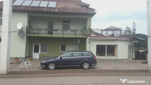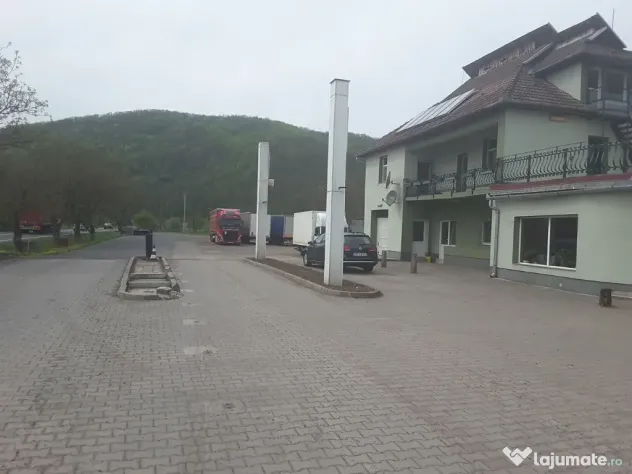 Vand pensiune in Petris - DN7, teren aferent in suprafata de 1 ha cu imobil construit in 1993 P+E+M si 4 cabanute, are 40 de locuri de parcare, parcarea fiind pazita. Parterul este format din: 1 restaurant si o terasa, capacitatea restaurantului fiind de 65 persoane. Etajul este format din: 1 apartament in suprafata de 200 mp cu bucatarie, living, baie, balcon, 1 birou si terasa in suprafata de 100 mp. Mansarda este formata din: 2 dormitoare mici, baie. Pensiunea este dotata cu centrala pe lemne si canalizare cu prister, la 30 m de cladirea principala se afla 4 casute dotate cu un pat dublu si o baie fiecare. Suprafata totala construita este de 515 mp.