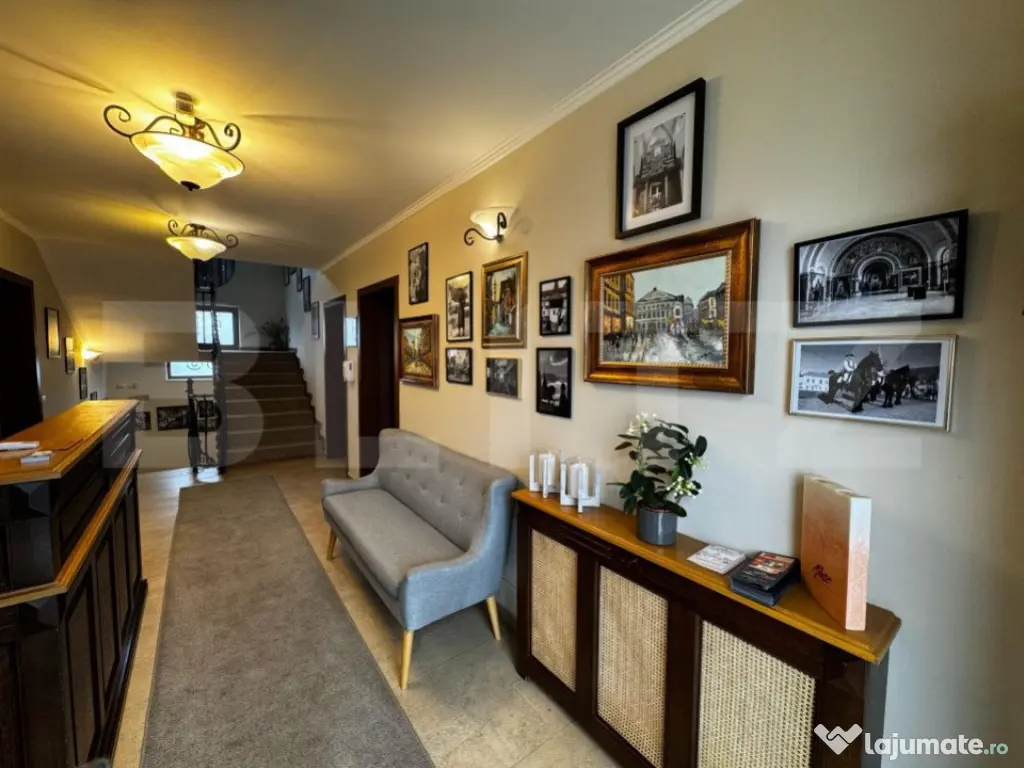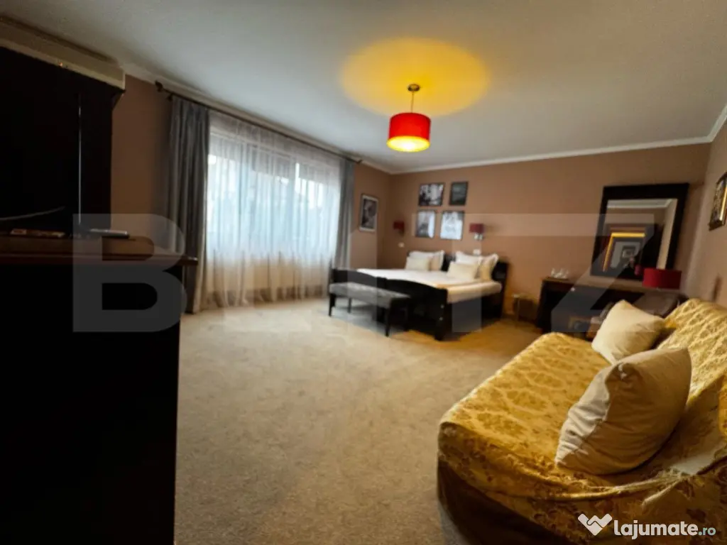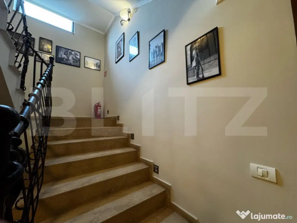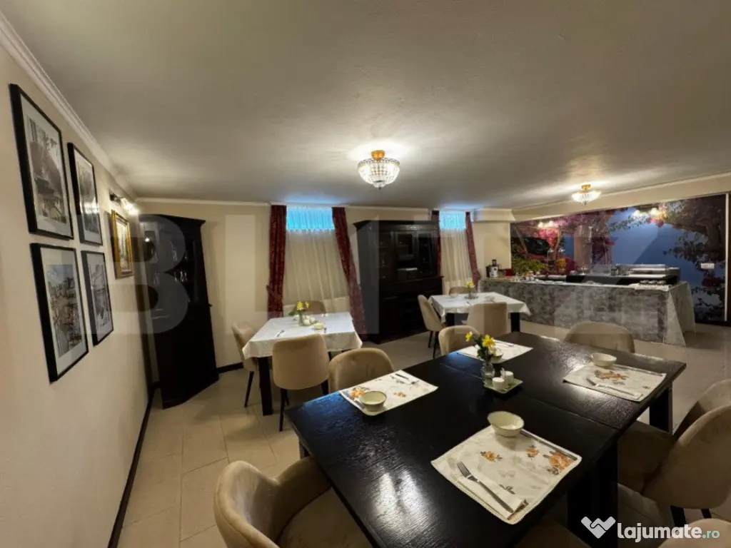 BLITZ propune spre Închiriere o pensiune perfectă pentru multiple tipuri de activități, precum birouri, clinici, saloane de estetică și înfrumusețare, sau chiar pentru continuarea activității actuale. Proprietatea beneficiază de 8 camere mari și spațioase, fiecare cu baie proprie. În plus, dispune de un salon pentru servirea mesei, saună, bucătărie complet utilată și mobilată, un birou, precum și o cameră tehnică dotată cu 2 centrale și un boiler mare. Accesibilă de pe 2 străzi, clădirea a fost construită în 2007 și se prezintă într-o stare impecabilă. De asemenea, este dotată cu un sistem de supraveghere instalat în 2024 și o poartă de acces automatizată. Oferă astfel condiții ideale pentru a începe sau extinde o afacere, păstrând în același timp un nivel ridicat de confort și siguranță. Această proprietate reprezintă o oportunitate rară pentru dezvoltarea unei afaceri în centrul orașului Alba Iulia, cu potențial mare de adaptare și creștere. Cod ofertă / ID BLITZ: P142872 Id intern: P142872 Stadiu construcţie: Finalizat Număr încăperi: 8