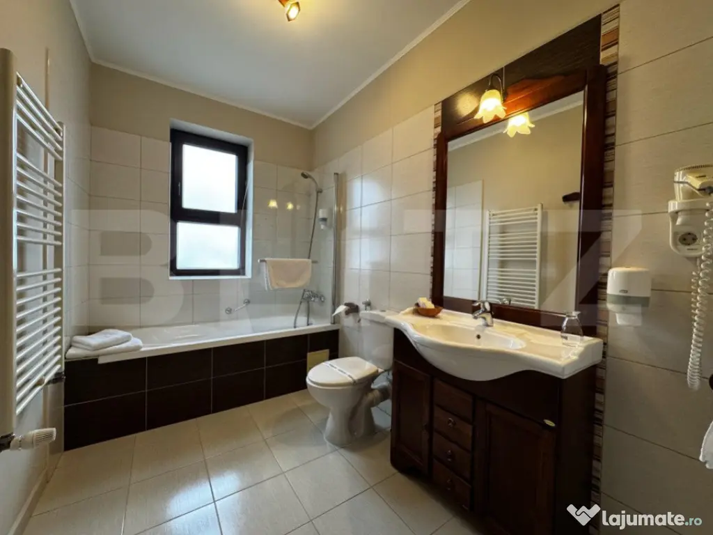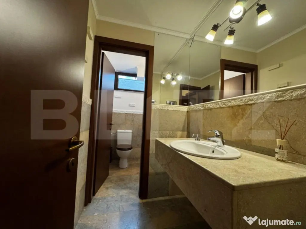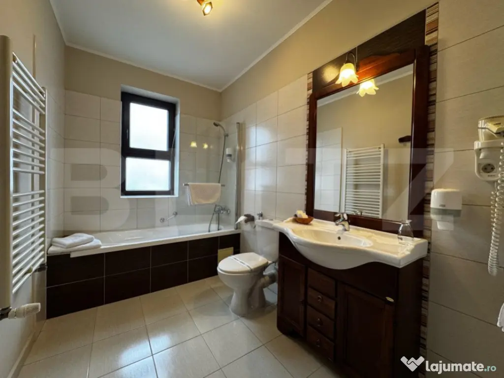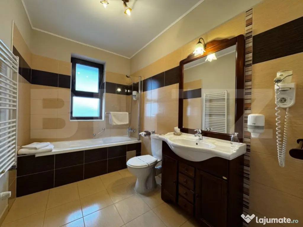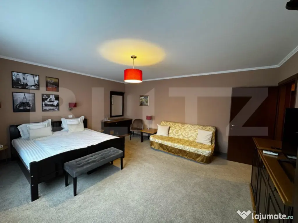 BLITZ propune spre Închiriere o pensiune perfectă pentru multiple tipuri de activități, precum birouri, clinici, saloane de estetică și înfrumusețare, sau chiar pentru continuarea activității actuale. Proprietatea beneficiază de 8 camere mari și spațioase, fiecare cu baie proprie. În plus, dispune de un salon pentru servirea mesei, saună, bucătărie complet utilată și mobilată, un birou, precum și o cameră tehnică dotată cu 2 centrale și un boiler mare. Accesibilă de pe 2 străzi, clădirea a fost construită în 2007 și se prezintă într-o stare impecabilă. De asemenea, este dotată cu un sistem de supraveghere instalat în 2024 și o poartă de acces automatizată. Oferă astfel condiții ideale pentru a începe sau extinde o afacere, păstrând în același timp un nivel ridicat de confort și siguranță. Această proprietate reprezintă o oportunitate rară pentru dezvoltarea unei afaceri în centrul orașului Alba Iulia, cu potențial mare de adaptare și creștere. Cod ofertă / ID BLITZ: P142872 Id intern: P142872 Stadiu construcţie: Finalizat Număr încăperi: 8