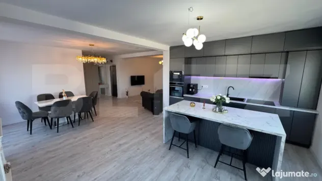 Blitz va prezinta un penthouse spectaculos, situat într-una dintre cele mai apreciate zone ale orașului, unde confortul și eleganța se îmbină perfect. Proprietatea impresionează prin finisaje premium, alese cu grijă pentru a crea un ambient modern și rafinat, precum și prin mobilierul de calitate, care completează armonios fiecare încăpere.
