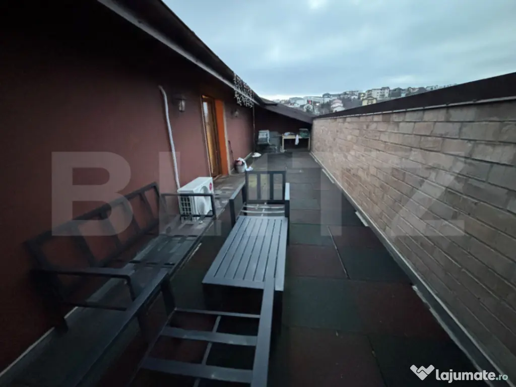 BLITZ vă propune spre vânzare un penthouse exclusivist, situat în Rediu, una dintre cele mai apreciate zone rezidențiale din Iași, recunoscută pentru liniște, aer curat și priveliști deschise. Cu o suprafață generoasă de 125 mp, această proprietate impresionează prin dimensiunile ample ale încăperilor, compartimentarea practică și luminozitatea naturală excelentă. Locuința este compusă din: 3 camere spațioase, cu multiple posibilități de amenajare (dormitoare, living, birou, cameră pentru copii); hol foarte generos, ce poate integra dressinguri sau spații suplimentare de depozitare; bucătărie separată, aerisită și funcțională; baie modernă, cu spațiu suficient pentru mobilier și dotări complete; terasă generoasă, perfectă pentru relaxare, socializare sau amenajare zonă lounge. Fiind situat la ultimul etaj, penthouse-ul oferă intimitate, liniște și o priveliște deschisă, beneficiind de lumină naturală pe tot parcursul zilei. Dotări și beneficii Centrală termică proprie Loc de parcare inclus Terasă spațioasă Compartimentare eficientă Suprafețe mari, peste media pieței Zonă rezidențială aerisită Potrivit pentru locuire sau investiție Această proprietate este ideală pentru cei care își doresc spațiu, lumină, intimitate și un plus de eleganță, într-un cadru rezidențial de calitate. Pentru informații suplimentare sau programarea unei vizionări, vă stăm la dispoziție. Cod ofertă / ID BLITZ: P164771 Id intern: P164771 Confort: 1 Tip imobil: Bloc de apartamente Număr Băi: 1