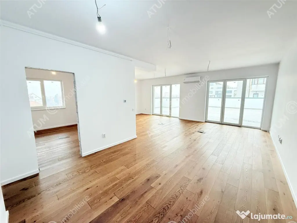 Va propunem spre vanzare un apartament tip penthouse situat in Selimbar, zona Doamna Stanca, amplasat la etajul 7 al unui imobil modern finalizat in anul 2025, intr-o zona rezidentiala noua, cu acces rapid catre centre comerciale, scoli, gradinite si principalele artere de legatura cu municipiul Sibiu. Pozitionarea la ultimul nivel ofera un avantaj major prin privelistea deschisa catre oras si prin distanta generoasa fata de cladirile invecinate, asigurand intimitate, lumina naturala si o panorama spectaculoasa atat ziua, cat si seara. Apartamentul are o suprafata utila de 111 mp si este in curs de amenajare interioara, urmand a fi predat la stadiul de cheie, cu toate finisajele incluse. Spatiul este gandit pentru confortul unei familii care apreciaza suprafetele ample si compartimentarea eficienta. Zona de zi este reprezentata de un living generos cu bucatarie open space in suprafata de 44.5 mp, un spatiu aerisit si luminos, ideal pentru petrecerea timpului in familie sau pentru socializare. Zona de noapte include trei dormitoare bine proportionate, doua bai complet echipate si un hol generos care asigura o circulatie fluida intre incaperi. Unul dintre punctele forte ale proprietatii este terasa impresionanta de 78 mp, care extinde considerabil spatiul de locuire si ofera posibilitatea amenajarii unei zone de relaxare, dining exterior sau chiar a unui spatiu verde suspendat. In completare, apartamentul beneficiaza de un balcon de 10 mp cu acces din dormitoare, oferind un plus de confort si functionalitate. Finisajele si dotarile sunt alese in acord cu standardele actuale de confort. Apartamentul dispune de usa metalica de acces, pereti tencuiti, gletuiti si zugraviti in lavabila, tamplarie PVC cu profil din 7 camere si trei foi de sticla pentru eficienta termica si fonica sporita, instalatie electrica cu curent trifazic, tablou electric cu sigurante automate pentru consumatorii de putere, prize si intrerupatoare montate. Sistemul de incalzire este realizat prin pardoseala, cu centrala termica proprie pe gaz si termostatare individuala pentru fiecare camera. In plus, este instalat un sistem de aer conditionat multisplit marca Midea, cu doua unitati de 24000 btu, asigurand climatizare eficienta in sezonul cald. Usi interioare marca Naturen, parchet Vicla si bai complet echipate completeaza standardul de calitate al locuintei. Proprietatea beneficiaza de doua locuri de parcare incluse in pret, unul situat in parcarea subterana a imobilului si unul suprateran, oferind confort si siguranta. Imobilul este dotat cu lift modern, acces securizat si spatii comune bine intretinute, iar zona este in continua dezvoltare, cu infrastructura moderna si facilitati urbane la indemana. Valoarea apartamentului este de 244.000 euro tva, se poate achizitiona si prin intermediul unui credit ipotecar. ID intern: 3147. Confort: 1 Tip imobil: Bloc de apartamente Număr Băi: 2 Posibilitate parcare: Da Nr. locuri parcare: 2