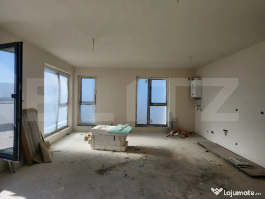 Blitz va propune spre vanzare un apartament intr-o zona nou dezvoltata, in zona Somesului din Floresti. Compartimentarea modern gandita este urmatoarea: hol, living + bucatarie open space, 1 dormitor, baie cu geam si terasa insumata de 46,32 mp. Apartamentul este pozitionat la etajul retras, intr-un bloc cu regim de inaltime D+P+4E+ER. Se preda la stadiul de finisat, in felul urmator: – peretii vor fi tencuiti, gletuiti si vopsiti cu lavabila alba – pardoselile vor fi predate cu sapa semiuscata executata, peste care se va aplica gresie sau parchet dupa caz – geamuri termopan, cu sticla tripan, cu usi de acces pe balcon. – usa de intrare si usile din interiorul apartamentelor vor fi montate – instalatiile interioare vor fi trase pe pozitii (electrice, sanitare, gaz) – baile vor fi echipate cu instalatii si obiecte sanitare, respectiv vas WC, lavoar si bateriile aferente. – instalatiile electrice executate ( panou, doze si intrerupatoare) – sistem de incalzire in pardoseala (centrala termica in condensare) – terase cu hidroizolatii si balustrazi unde este cazul. Contracost se poate achizitiona o parcare subterana la pretul de 9000 euro, iar la pretul de 5000 euro o parcare exterioara. Pentru pretul afisat, avansul minim perceput este de 30%. Drumul de acces este asfaltat. Zona este in plina dezvoltare, cu magazine, farmacii, acces facil la E60 si statii de BUS, statii incarcare masini electrice, etc. Ansamblul va fi finalizat in perioada iunie - iulie 2026. Daca se doreste apartamentul semifinisat se mai scade din pret 150e/mp. !!! PRETURILE NU INCLUD TVA !!! Pentru mai multe informatii si stabilirea unei vizionari va stam la dispozitie. Cod ofertă / ID BLITZ: P155425 Id intern: P155425 Confort: 1 Tip imobil: Bloc de apartamente Număr Băi: 1 Nr. locuri parcare: 1