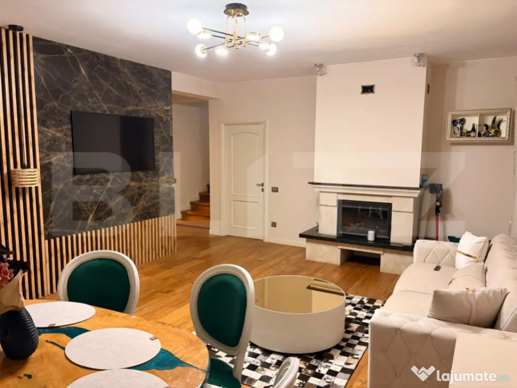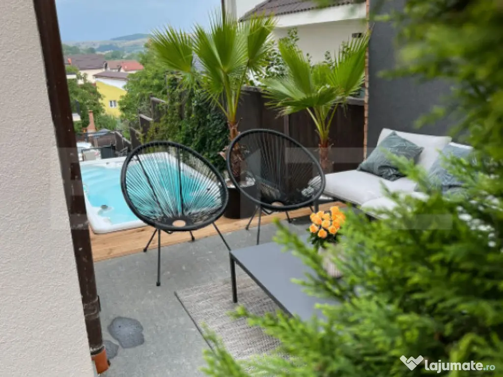 Blitz ofera spre vânzare un penthouse spectaculos, situat într-o vilă modernă cu doar 2 unități locative, amplasată în cartierul Gruia, într-o zonă privată de case, cu acces pe drum privat. Proprietatea impresionează prin suprafața generoasă de 230 mp utili (incluzând terasa), compartimentare inteligentă și finisaje de înaltă calitate. Compartimentare: - Etaj 1 (zona principală – ~80 mp + balcon 5 mp): - Living generos cu șemineu - Bucătărie închisă - 2 dormitoare (zonă separată) - Dressing - 2 băi (baie principală + baie de serviciu) - Balcon cu orientare estică Etaj superior: - Terasă panoramică de 50 mp, cu zonă de barbeque - Cameră tip mansardă (~50 mp), ideală pentru relaxare - Baie + dressing Subsol (~50 mp): - Cramă - Cămară - Baie - Spații de depozitare Dotări și finisaje premium: - Încălzire în pardoseală + centrală proprie - Geamuri termopan cu 3 sticle și 7 camere - Parchet din lemn masiv - Finisaje exclusiviste, ultrafinisat și complet mobilat/utilat Facilități suplimentare: - Garaj la subsol inclus - Curte comună amenajată cu piscină, saună și zonă de relaxare - Zonă exclusivistă, liniștită, cu panoramă deosebită asupra orașului Această proprietate este ideală pentru o familie care își dorește intimitate, confort și un stil de viață premium, într-una dintre cele mai apreciate zone rezidențiale. Te asteptam la vizionare! Cod ofertă / ID BLITZ: P170090 Id intern: P170090 Confort: 1 Tip imobil: Casă/Vilă Număr Băi: 2