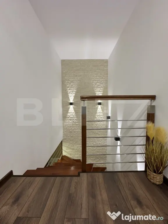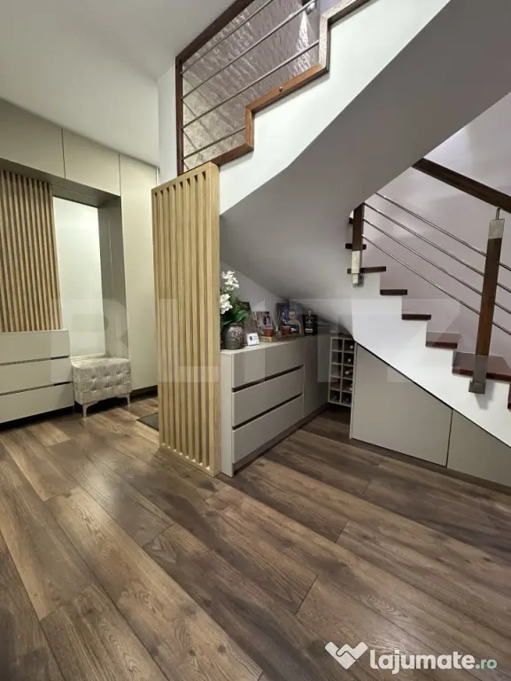 Blitz vă propune spre vânzare un penthouse modern, dispus pe două niveluri, situat la etajul 2, cu o suprafață utilă generoasă de 137 mp, ideal pentru o familie care își dorește confort, spațiu și finisaje premium. Localizare: Zona Unirii (în spate la Penny) Include loc de parcare Compartimentare inteligentă Nivel 1: Dormitor – 12 mp Dressing Baie Living + bucătărie open-space – 26 mp Terasă – 15,6 mp Nivel 2: 2 dormitoare (15 mp și 14,5 mp) Fiecare cu baie proprie și dressing Terasă – 19,5 mp Total: 4 camere, 3 dormitoare, 3 băi, 3 dressing-uri 2 holuri spațioase Camere mari și luminoase Se vinde complet mobilat și utilat Întregul mobilier este realizat pe comandă, cu accent pe calitate și detalii: Bucătărie, dormitoare, băi, hol, cuier – mobilier personalizat Scară interioară din lemn masiv de stejar (4 cm grosime) Balustradă din combinație de stejar masiv și inox Electrocasnice și dotări premium Mașină de spălat vase, cuptor electric și cuptor cu microunde – Whirlpool Frigider încorporat – Beko Hotă electrică – Bosch Mașină de spălat rufe + uscător – AEG Centrală pe gaz – Saunier Duval Tâmplărie PVC – Salamander Uși și parchet – Porta Doors Întrerupătoare și prize – Schneider Electric Proprietatea este amenajată cu bun gust, folosind materiale de calitate superioară, iar finisajele au fost realizate cu atenție deosebită la detalii. Un apartament ideal pentru cei care își doresc un cămin elegant, spațios și complet pregătit pentru mutare. Pentru mai multe detalii sau programarea unei vizionări, nu ezitați să ne contactați. Cod ofertă / ID BLITZ: P164327 Id intern: P164327 Confort: 1 Tip imobil: Bloc de apartamente Număr Băi: 3 Nr. locuri parcare: 1