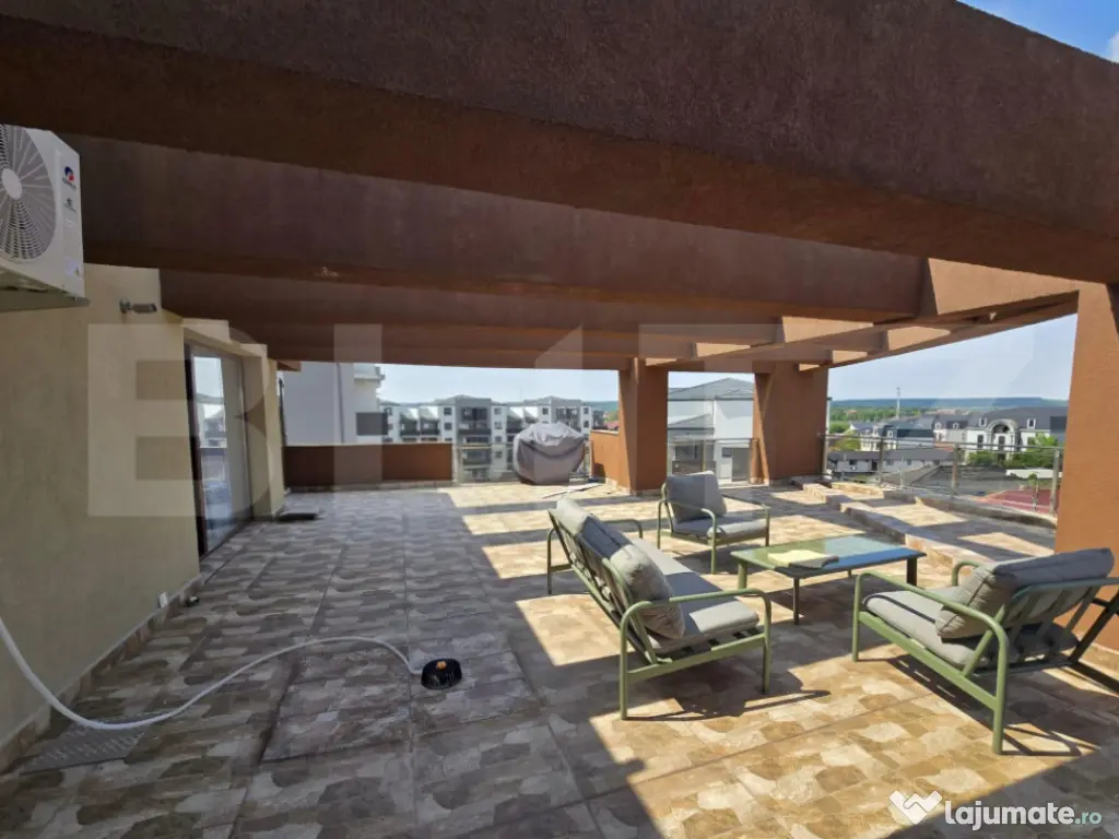 Penthouse modern cu terasă panoramică de 83 mp – Locație centrală! Blitz vă propune spre vânzare un penthouse spectaculos, situat într-o zonă centrală, la doar 5 minute de mers față de centrul orașului. Proprietatea are o suprafață totală de 163 mp, dintre care 80 mp sunt utili, iar 83 mp reprezintă o terasă generoasă cu potențial de extindere. Acest penthouse oferă un stil de viață premium, fiind situat într-un bloc nou, izolat termic, ce beneficiază de toate facilitățile moderne. Încălzirea se realizează prin centrală termică proprie, asigurând eficiență și confort pe tot parcursul anului. Un avantaj rar întâlnit: terasa de 83 mp permite construirea unei camere suplimentare și a unei a doua băi – un potențial ideal pentru extindere sau pentru crearea unui spațiu de relaxare unic, cu vedere panoramică asupra orașului. Alte beneficii: • Compartimentare practică și luminoasă • Locație excelentă, aproape de restaurante, mijloace de transport, instituții de învățământ și puncte de interes • Bloc cu acces securizat, comunitate liniștită • Posibilitate de personalizare interioară după propriul gust Acest penthouse este alegerea perfectă pentru cei care caută o locuință spațioasă într-o zonă centrală, cu posibilitate reală de extindere și amenajare a unui rooftop spectaculos. Contactează-ne pentru o vizionare – locuința ta de vis te așteaptă! Cod ofertă / ID BLITZ: P149268 Id intern: P149268 Confort: 1 Tip imobil: Bloc de apartamente Număr Băi: 1