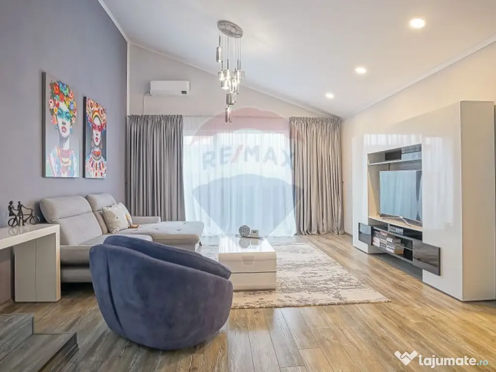 Vă propun spre vânzare un Apartament modern, spațios și elegant, situat în Râșnov, pe Calea Brașovului nr. 23, bl. 5, et. M2, Cu o suprafață generoasă de 119 mp, proprietatea este ideală pentru cei care își doresc confort, design modern și spații bine organizate. Locuința este dispusă pe două niveluri și beneficiază de scară interioară, oferind o compartimentare practică și un plus de intimitate. Orientarea vestică asigură lumină naturală plăcută pe parcursul după-amiezii și seri relaxante. Compartimentare: Living spațios cu zonă de relaxare Bucătărie open-space complet mobilată și utilată 3 dormitoare 1 living 2 băi Dressing generos Holuri bine optimizate Balcon/terasă Scară interioară Dotări și finisaje: Complet mobilat și utilat Mobilier modern și de calitate Bucătărie complet echipată Finisaje premium Spații luminoase Avantaje: Orientare vestică – lumină naturală și apusuri frumoase Zonă liniștită, ideală pentru locuit Compartimentare eficientă pe două niveluri Ideal pentru locuință sau investiție Confort: 1 Tip imobil: Bloc de apartamente Număr Băi: 2 Posibilitate parcare: Nu