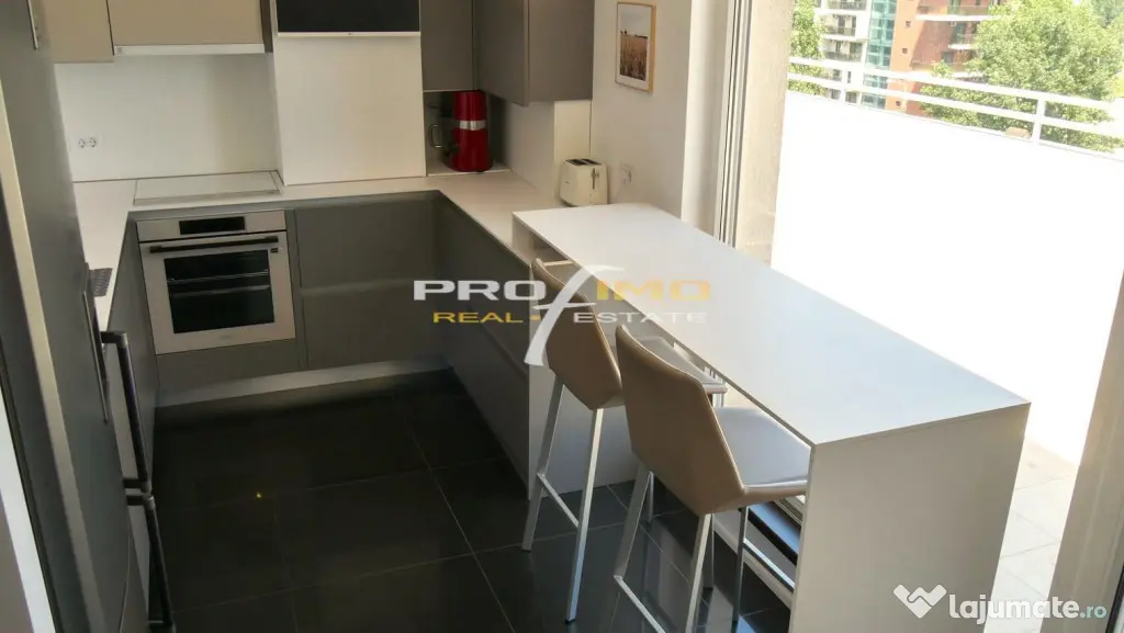 Interiorul a fost amenajat in 2025 , mobilat si utilat de designer si cuprinde 3 aparate aer conditionat, 2 Yamato si 1 Bosch, centrala termica pe gaz Daikin, incalzite in pardoseala in zona de zi (living, bucatarie, zona depozitare si WC serviciu), mobilier living Rovere, masina de spalat rufe si vase, iluminat economic led cu spoturi, rulouri cu actionare electrica la living si bucatarie.