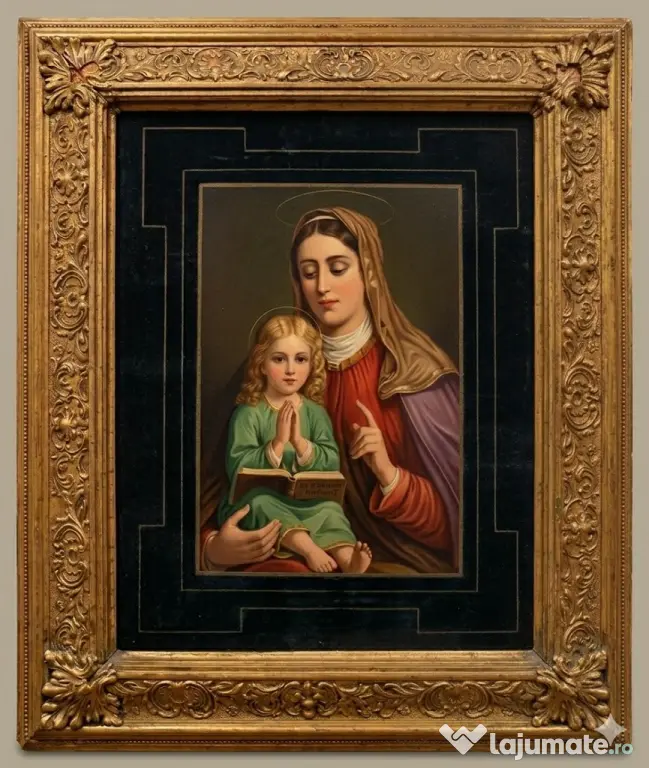 Vând set deosebit format din două tablouri religioase de colecție, piese de epocă (peste 100 de ani vechime), reprezentându-i pe Sfântul Iosif cu Pruncul și Sfânta Ana cu Maria.