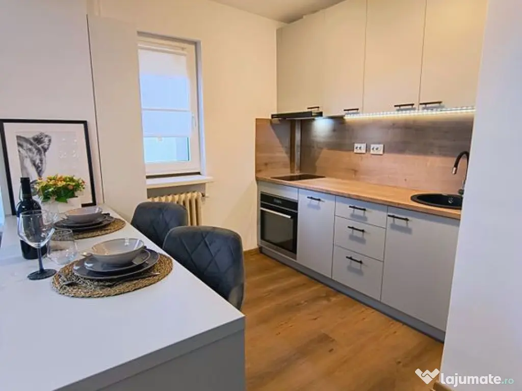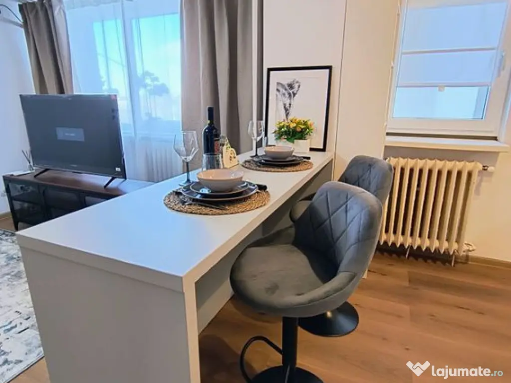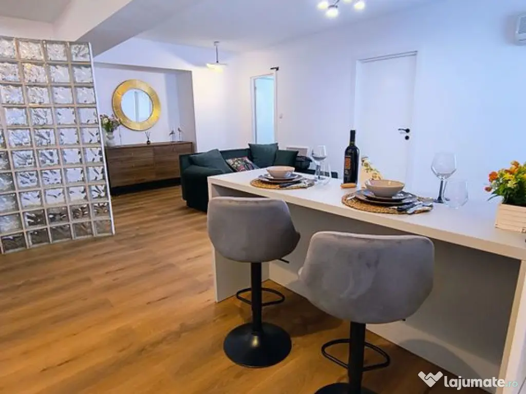 Top Home Advisors va propune spre vânzare un apartament de 2 camere amenajat modern 2026 cu bucătărie open space, mobilat și utilat complet Nou! , mașină de spălat vase, TV LCD Qled Smart TV gen 2025, aer condiționat. Liber! La cheie! Merita văzut! Vedere panoramica. Imobilul are adăpost de protecție civil, un plus de siguranță. Broker exclusiv Confort: 1 Tip imobil: Bloc de apartamente Număr Băi: 1 Posibilitate parcare: Nu