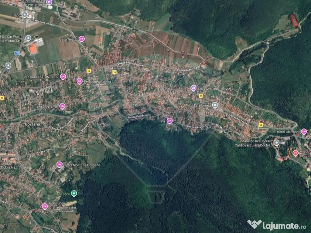 În renumita stațiune balneoclimaterică Covasna, cunoscută drept „Stațiunea celor 1000 de izvoare de sănătate”, îți propunem spre vânzare un teren generos de 2.800 mp, amplasat într-o poieniță superbă, înconjurată de pădure, chiar în spatele Hotelului Clermont, pe strada Andrei Șaguna.
