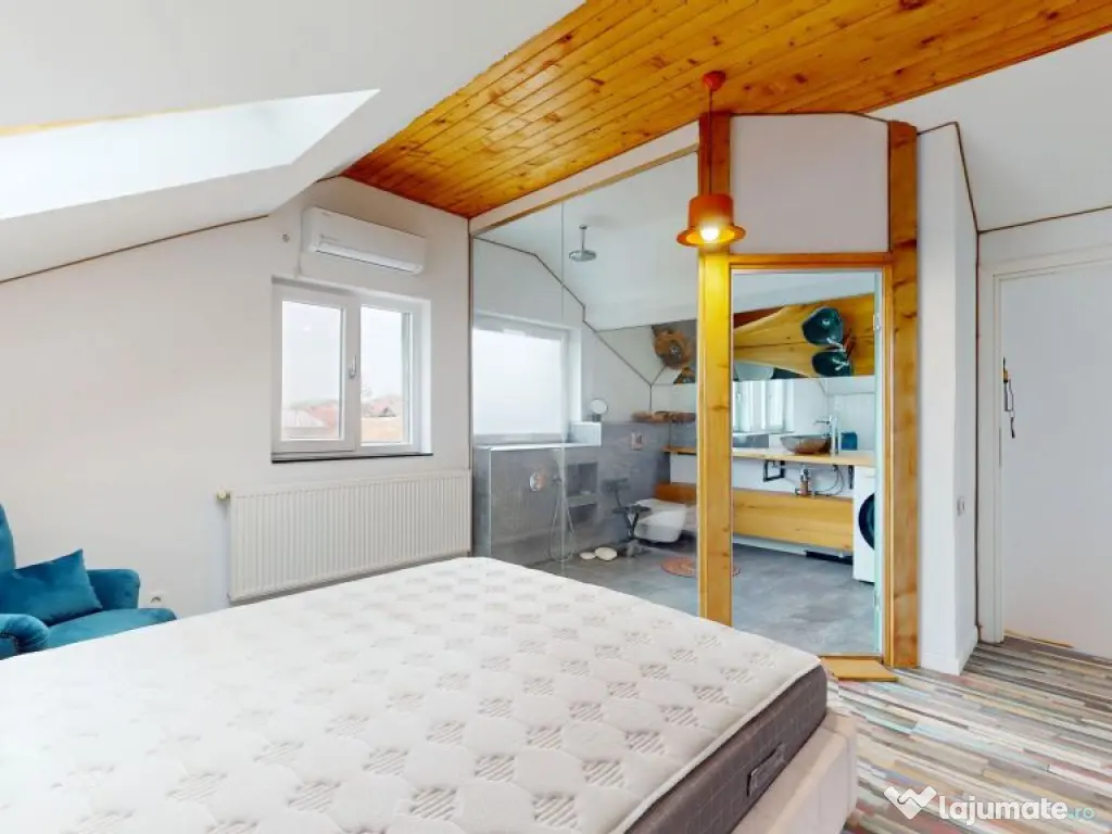 Comision 0. Va propunem spre vânzare o vila individuala,perfecta pentru o familie care își dorește confort,intimitate și un stil de viața modern. Locație excelenta ,central la 4 minute de market,scoala,stb,primarie. Caracteristici principale,compartimentare -4 camere o compartimentare ideala -3 dormitoare -3 bai moderne Dormitorul matrimonial cu dressing o baie spectaculoasă și luminoasă Sisteme de climatizare cu ventiloconvectoare,panouri solare de 5kw. Mobilata și utilata Curtea amenajată cu piatra naturala, gazon,2 terase cochete pentru relaxare si petreceri -2 locuri de parcare. Interiorul impresionează prin finisaje moderne ,spatii luminoase și o compartimentare practica. Zona de living cu bucătărie este primitoare ,ideala pentru momentele petrecute in familie și cu prietenii. Dormitorul matrimonial oferta intimitate și confort,beneficiind de baie proprie si dressing,creănd un spatiu privat complet. Curtea amenajată cu bun gust completează perfect proprietatea ,fiind locul ideal pentru relaxare sau petrecerea timpului liber. Pentru mai multe detalii sau programarea unei vizionari,nu ezitați sa ma contactați!0722366321. Număr niveluri imobil: 1 Număr Băi: 3 Posibilitate parcare: Da Nr. locuri parcare: 2 Curent Apă Canalizare Gaz Încălzire Climă
