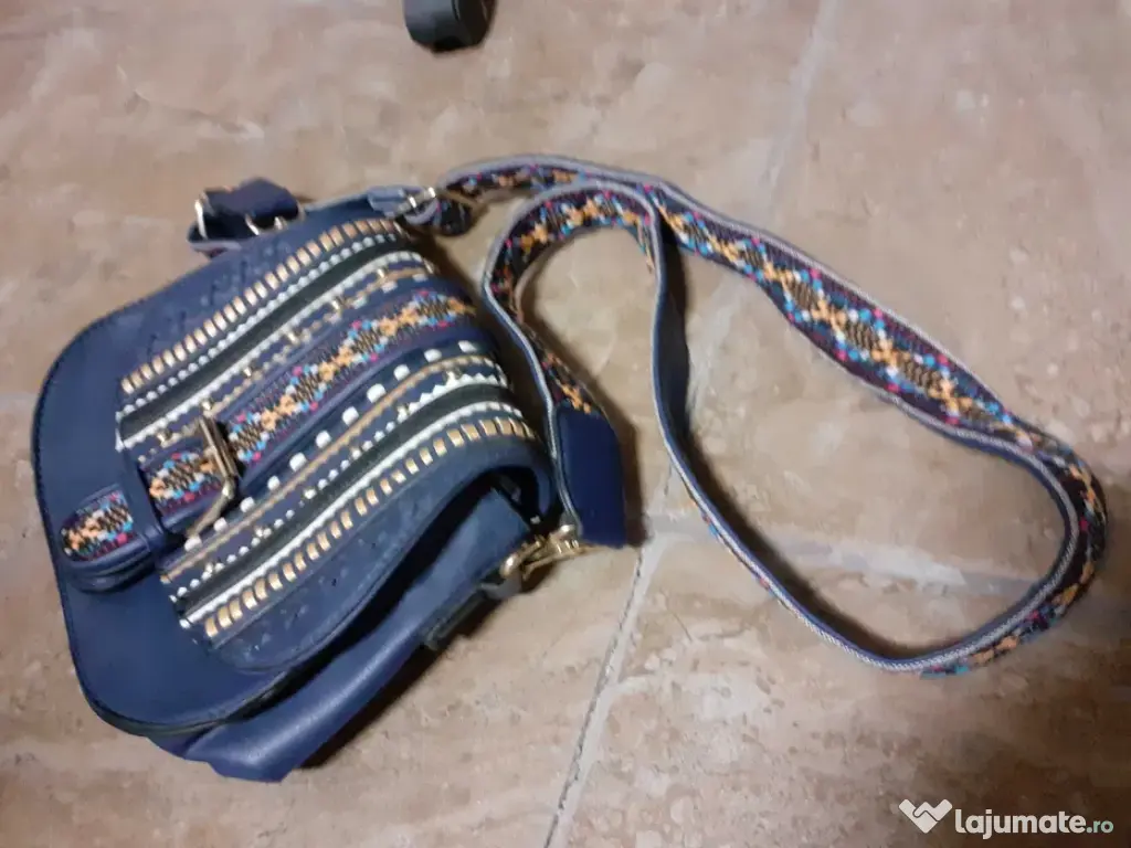 Posete pentru damă de culoare albastră+ culoare neagra cu model tip national . Un accesoriu perfect pentru a completa ținuta casual sau elegantă , realizate din piele sintetică . Noi , au inca eticheta . Nu trimit prin posta , curier