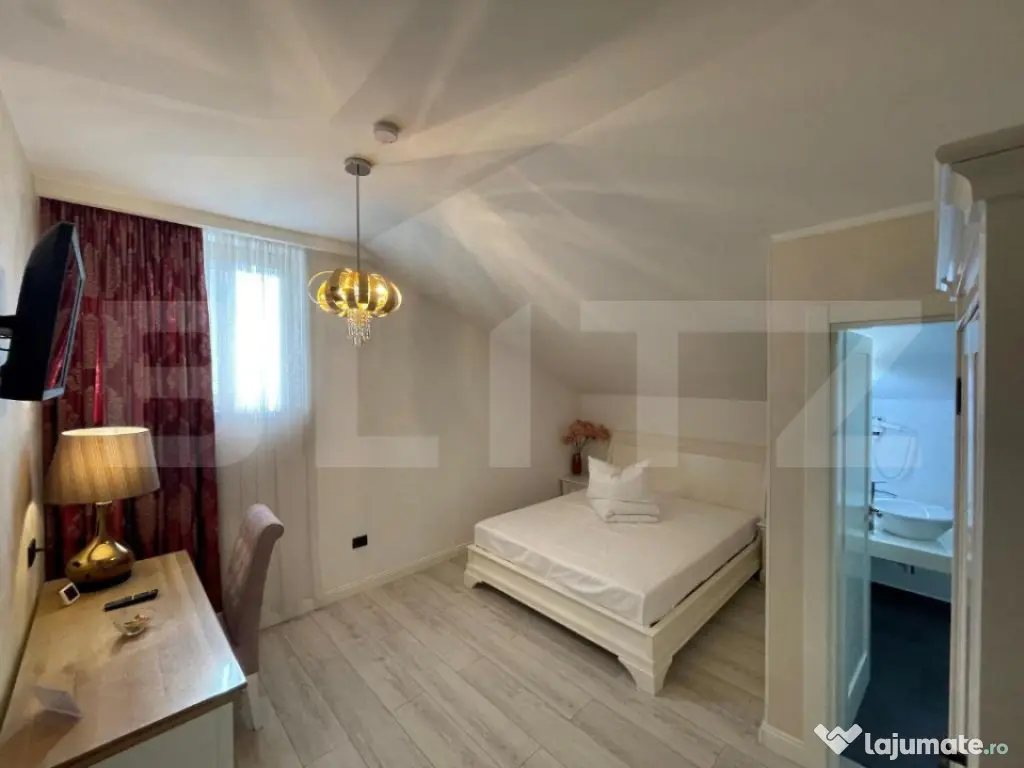 Blitz vă oferă spre vânzare o afacere la cheie – pensiune complet funcțională cu 6 camere și restaurant mobilat și utilat, situată în Alba Iulia. NU SE VINDE IMOBILUL, afacerea este amplasată la doar 600 m de Poarta a III-a a Cetății Alba Carolina, oferind acces rapid la principalele obiective turistice ale orașului. Dispune de restaurant, bar, terasă și parcare privată gratuită, fiind pregătită pentru preluare și continuarea activității fără investiții suplimentare. Camerele sunt dotate cu aer condiționat, WiFi gratuit, TV cu ecran plat, birou, dulap, seif și baie privată, multe dintre ele oferind vedere către oraș. Printre facilitățile ce le oferă se numără: -Grădină amenajată, -Lounge comun, -Terasă pentru servirea mesei, -Parcare privată gratuită pentru oaspeți. Afacerea reprezintă o oportunitate excelentă pentru investitori sau antreprenori care doresc să preia o unitate de cazare și alimentație deja consacrată, într-o zonă cu trafic turistic ridicat. Cod ofertă / ID BLITZ: P158607 Id intern: P158607 Stadiu construcţie: Finalizat Număr încăperi: 6
