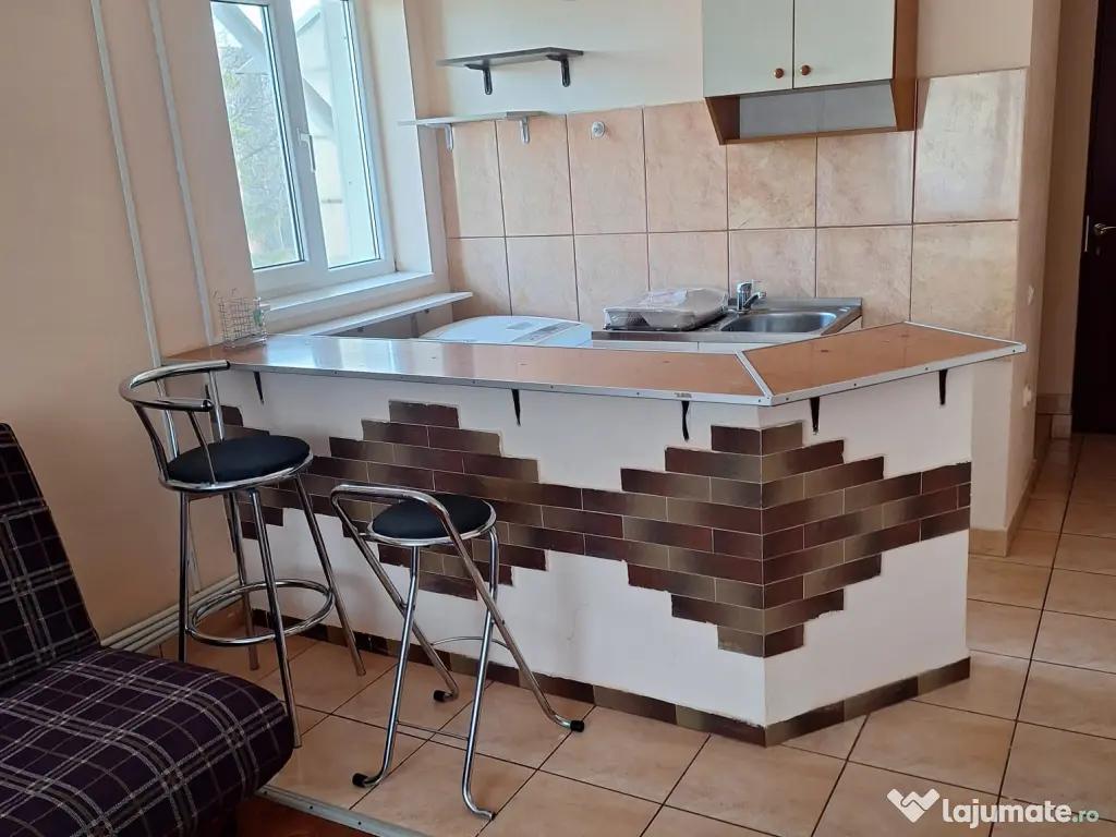 Garsoniera are in dotare: masina de spalat, tv, frigider, aragaz, aer conditionat, conectare retea WI-FI.