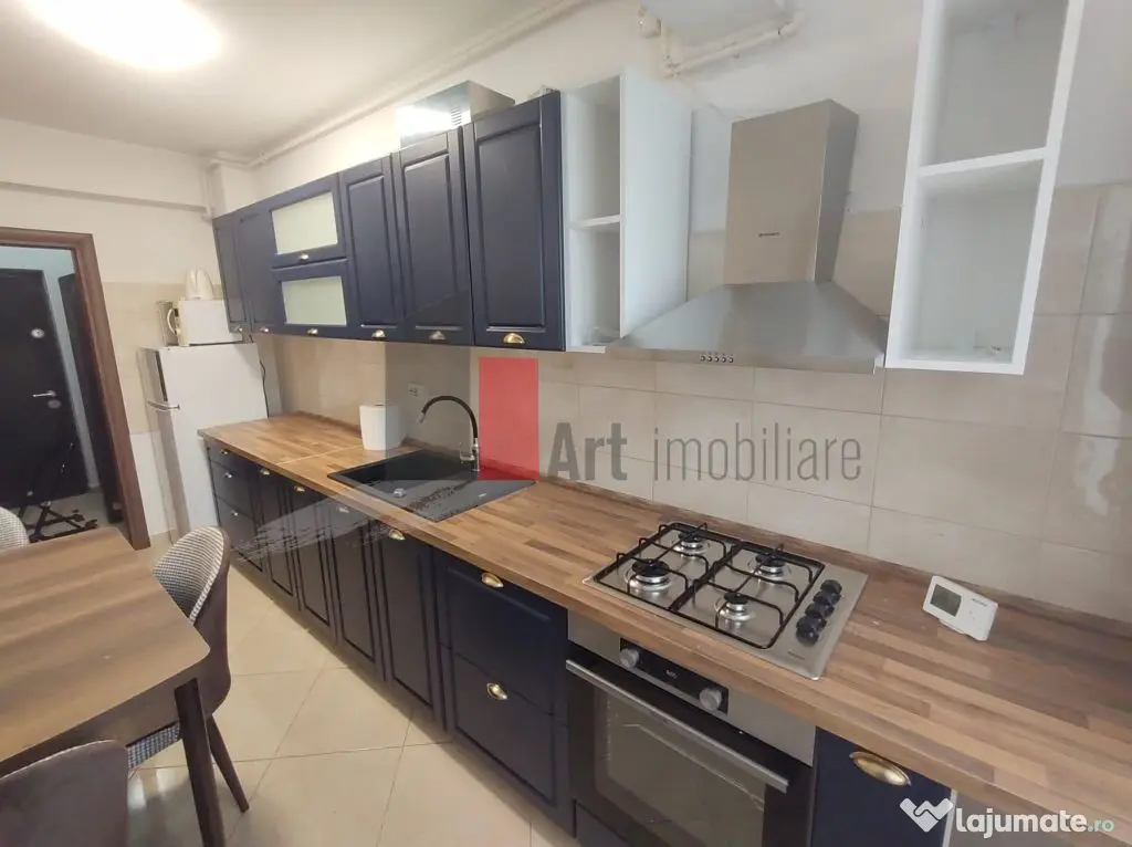 Locuința este complet mobilată și utilată, fiind la prima închiriere. Este dotată cu centrală proprie, aparat de aer condiționat, frigider, mașină de spălat rufe. Balconul este închis.