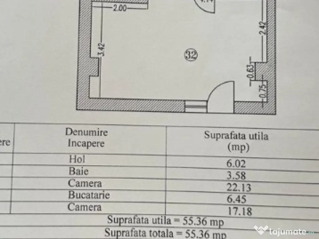 Va propunem un apartament de 2 camere , decomandat cu o suprafata utila de 55 mp , etajul 1 /4 , centrala gaze , aer conditionat , gresie , faianta , parchet , izolat exterior , liber , nemobilat , ideal de locuit , s au investitie . Confort: 1 Tip imobil: Bloc de apartamente