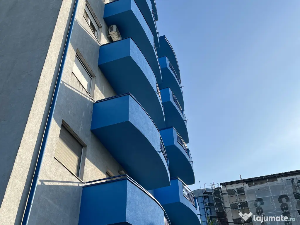 Zona este una linistita, blocul fiind retras de bulevard in curtea proprie iar apartamentul este orientat spre sud, find economic si luminos iar totodata vara este protejat de umbra copacilor avand are un singur perete comun cu un apartament vecin (cel de la bucatarie) este foarte ferit de zgomote.