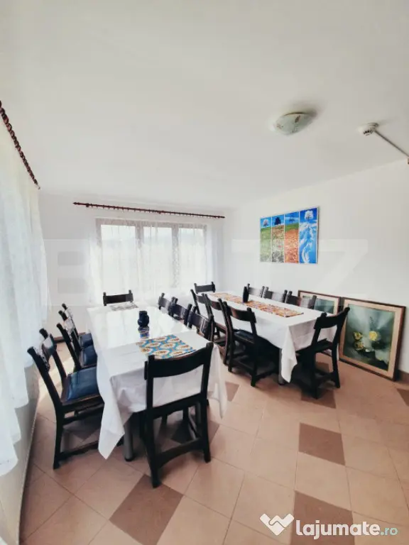 BLITZ oferă spre vânzare o proprietate generoasă cu 10 camere, pregătită parțial pentru a fi destinată îngrijirii persoanelor în nevoie, situată în Comuna Mociu. Casa prezintă un regim de înălțime D+P+M+Pod, cu un teren semnificativ aflat în proximitate.