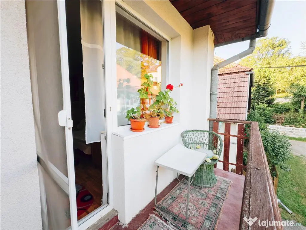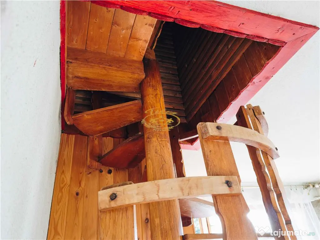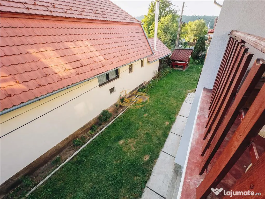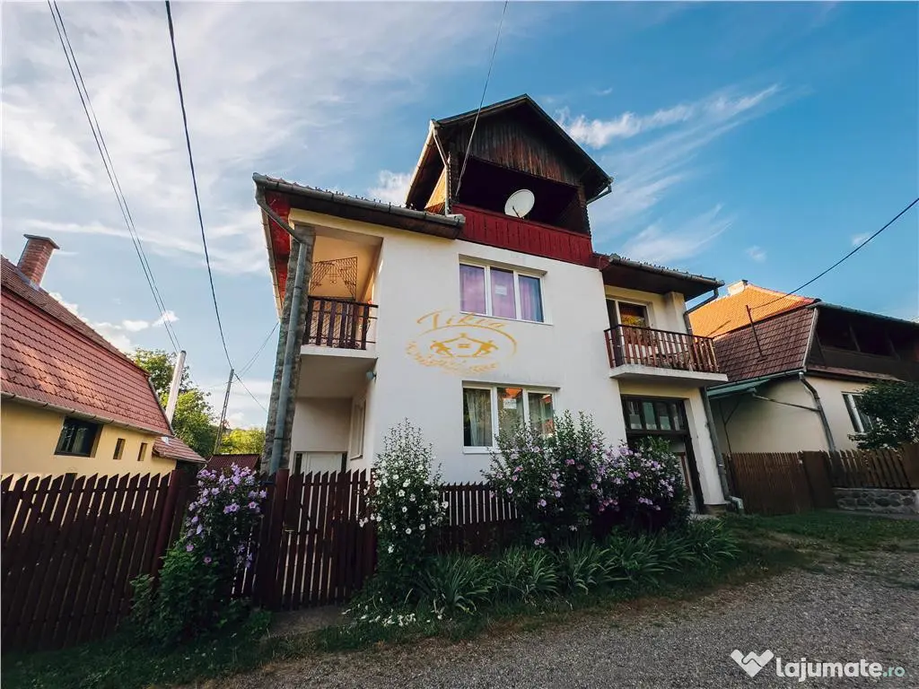 Va propunem spre vanzare in Praid, jud. Harghita, aproape de centrul comunei (str. Regelui nr. 16), un imobil compus dintr-o casa de locuit si o casa de oaspeti, situate pe un teren de 500 msup2;. Casa 1 (dinspre drum) are suprafata construita totala de 222 msup2;, cu un regim de inaltime P 1E. Este compusa din 4 camere, 2 bai, bucatarie, camara, 2 holuri, garderoba, debara, terasa inchisa, 3 balcoane si spatiu pentru centrala termica. Casa a fost construita in 1987 din caramida pe fundatie beton si piatra, este acoperita cu tigla ceramica. Este izolata termic cu polisitren de 5 cm. Dotari si finisaje: bull; Parchet laminat in camere, gresie in bai si bucatarie bull; Vopsea lavabila in camere, faianta si vopsea lavabila in bai si bucatarie bull; Usa de intrare din PVC cu termopan, usile interioare din lemn bull; Tamplarie din PVC cu termopan. Casa 2 (casa de oaspeti din spate) are suprafata construita totala de 86 msup2;, cu un regim de inaltime P M, compusa living, 4 camere, 2 bai, bucatarie, hol, balcon. A fost construita in 1994 din structura usoara de lemn, este acoperita cu tigla ceramica, nu este izolata termic. Dotari si finisaje: bull; Dusumea in camere, gresie in bai si bucatarie bull; Lambriu de lemn in camere, faianta si vopsea lavabila in bai si bucatarie bull; Usa de intrare si usile interioare din lemn fara termopan bull; Tamplarie din lemn fara termopan. Icirc;ncalzirea imobilului este asigurata prin centrala termica proprie si calorifere, cu un cazan pe combustibil solid. Icirc;n ambele case se mai afla cate o soba de teracota functionala. Casa 1 se vinde partial mobilat, casa 2 mobilat. La parterul casei 1 se afla un garaj cu usa automata (cu loc de parcare pentru o masina), iar in curte se afla un sopron pentru lemne, o magazie pentru unelte, un foisor si o vatra. Pret: 189.000 EUR - negociabil. Număr Băi: 4 Comision cumpărător: 0% Curent Apă Canalizare