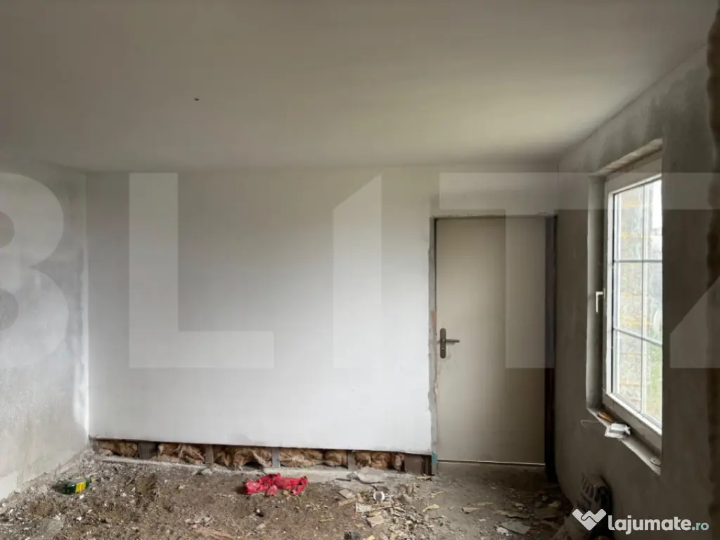 Imobilul beneficiază de apă trasă în curte, iar gazul se află în fața casei. Casa nu este complet finisată, necesitând investiții suplimentare, ceea ce oferă viitorului proprietar posibilitatea de a o amenaja după propriul gust.