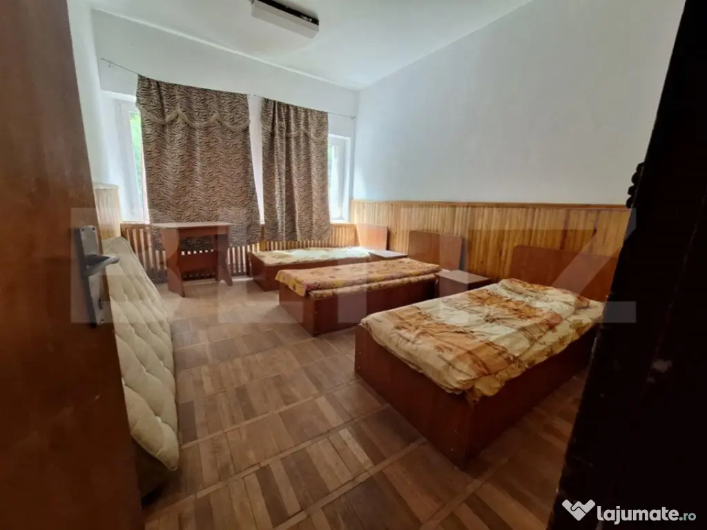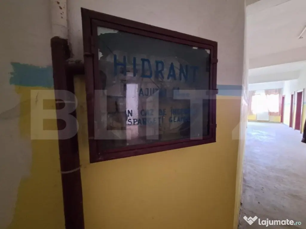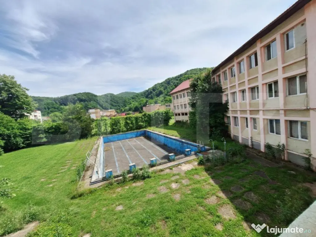Blitz propune spre vanzare o cladire compusa din: - 1857 mp, bloc p+2 de 737 mp - 75 de camere, 2 spatii comerciale situate in curte si compuse din bazin de inot descoperit si platforma amenajata, in suprafata de 707 mp, respectiv magazie, remiza pompieri, baie, 2 holuri, 4 birouri, sala de mese, 2 grupuri sanitare, atelier mecanic, spalator cu dus; - 3 hale productie in suprafata utila de 457 mp; - teren de fotbal cu tribuna 1ha, situata intr-o zona ideala pentru investitii. Beneficiaza de toate utilitatiile (apa, gaz, curent monofazic, trifazic, hidranti pe fiecare palier). Aceasta proprietate poate fi valorificata pentru a fi utilizata ca si camin de batrani, oferind posibilitati nelimitate de afaceri pentru investitorii interesati, amplasata intr-o zona nepoluata, ferita de curenti puternici de aer, de zgomote, vibratii sau mirosuri dezagreabile. Nu ezitati sa ne contactati pentru mai multe informatii sau pentru a programa o vizionare. Suntem aici pentru a va ajuta sa gasiti acel imobil perfect care sa se potriveasca nevoilor si dorintelor dvs. Cod ofertă / ID BLITZ: P97414 Id intern: P97414 Stadiu construcţie: Finalizat Nr. locuri parcare: 4 Tip imobil: Bloc de apartamente