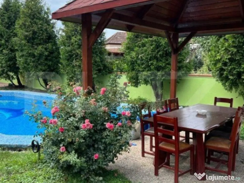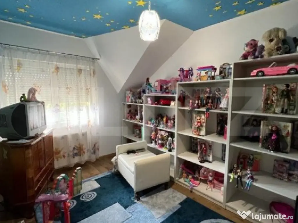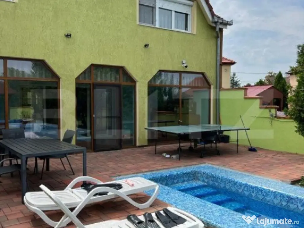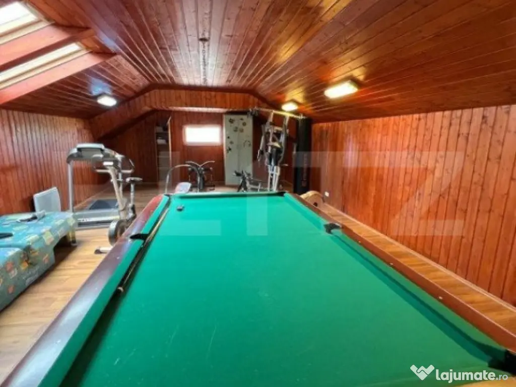 Vă oferim o oportunitate unică de a achiziționa o proprietate impresionantă, situată pe un teren de 2000 mp și cu o casă generoasă de 300 mp utili. Această proprietate deosebită este cu adevărat o oază de confort și relaxare, cu numeroase facilități pentru întreaga familie. Exteriorul casei este un adevărat paradis, cu o piscină în curtea din spate, perfectă pentru a vă răcori în zilele calde de vară. De asemenea, găsiți un foisor amenajat pentru a lua mese în aer liber și un teren plat ce poate fi transformat în teren de fotbal, oferind oportunități nesfârșite pentru distracție și activități în aer liber. O livadă cu pomi fructiferi completează peisajul, oferindu-vă un colț de natură în propria curte. Casa este compartimentată în mod inteligent, oferind funcționalitate și confort în fiecare colțișor. La demisol, aveți acces la o pivniță spațioasă și un garaj generos, asigurându-vă spațiu de depozitare și loc pentru mașină. Parterul casei este compus dintr-un hol de intrare, o bucătărie open space cu living, o baie cu cabina de duș, un spațiu de depozitare și o terasă închisă de 33 mp, unde puteți petrece momente relaxante cu familie și prietenii. La etaj, veți găsi un hol spațios, din care puteți accesa cele 4 dormitoare decomandate, inclusiv unul cu dressing. Baia spațioasă este dotată cu cadă cu hidromasaj pentru momente de relaxare totală. Un balcon cu vedere spre strada principală completează etajul. Mansarda a fost amenajată cu atenție la detalii, găzduind un spațiu de fitness și o masă de biliard, perfecte pentru petrecerea timpului liber într-un mod activ și distractiv. Această proprietate este dotată cu tot ce aveți nevoie pentru siguranță și eficiență energetică: două camere de supraveghere, sistem de alarmă și panouri fotovoltaice pe acoperișul casei. Pentru mai multe informații și pentru a programa o vizionare, vă rugăm să ne contactați. Suntem aici pentru a vă ajuta să descoperiți toate beneficiile acestei proprietăți extraordinare. Alegeți confortul și rafinamentul pentru viitorul cămin al familiei dumneavoastră! Cod ofertă / ID BLITZ: P92111 Id intern: P92111 Număr niveluri imobil: 2 Număr Băi: 2 Nr. locuri parcare: 3