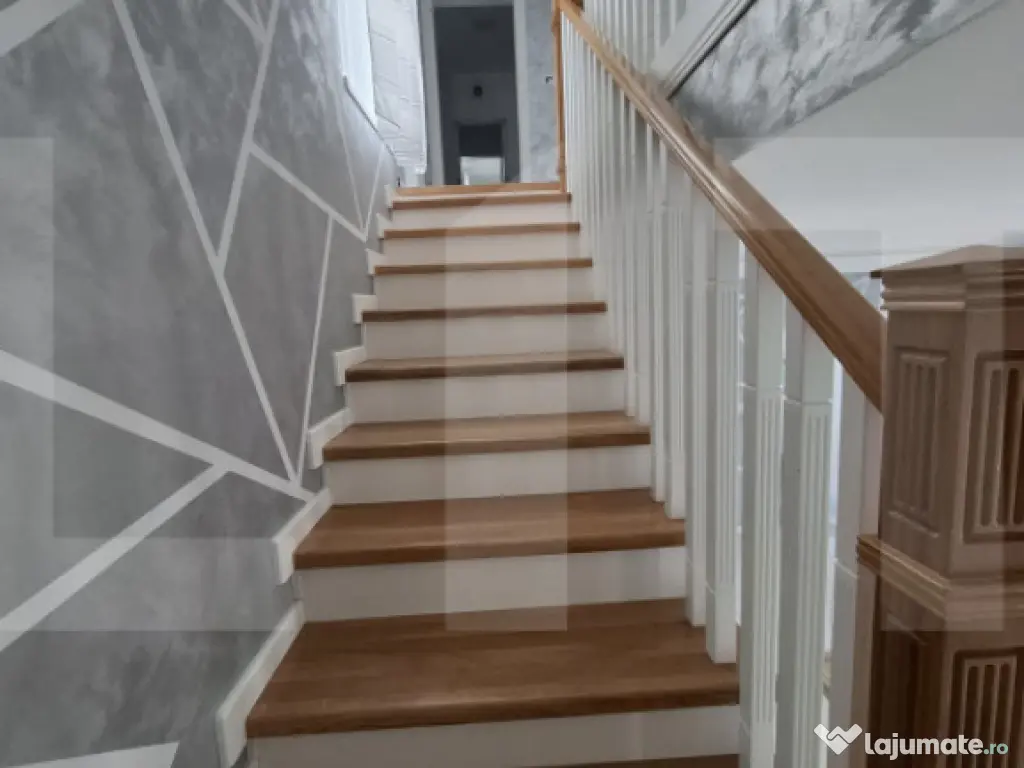 Casa principală are o suprafață utilă de 160 mp și este compartimentată eficient. La parter se regăsesc un living generos, o bucătărie spațioasă, o baie și un dormitor, iar la etaj se află 3 dormitoare, o baie și un dressing. Două dintre dormitoare sunt nemobilate, oferind libertatea amenajării după propriul gust. Locuința este modernă, luminoasă și aerisită, gândită pentru confortul unei familii.