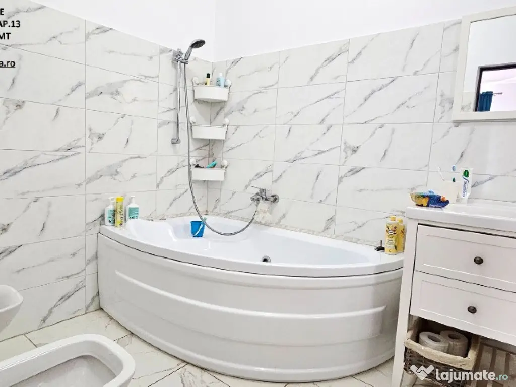 Parter: hol primitor, living generos și luminos, ce abundă în lumină naturală, bucătărie mare ( prevăzută cu cămară ) mobilată și utilată, cu electrocasnice de ultimă generație încastrate în mobilier, din care se iese într-o terasă exterioară de 7m / 3m acoperită, ideală pentru petrecerea timpului alături de cei dragi, 2 dormitoare spațioase, 2 băi moderne prevăzute cu ferestre pentru aerisire naturală, una cu cadă, cealaltă cu duș cu hidromasaj, echipată cu mașină de spălat și uscător de rufe.
