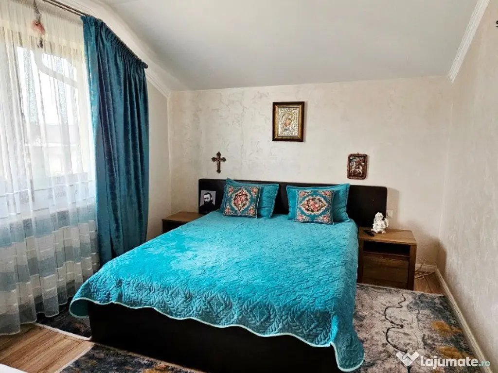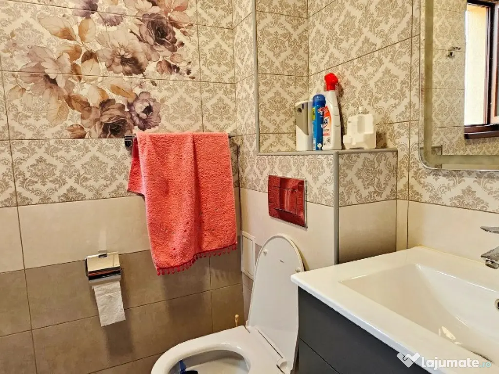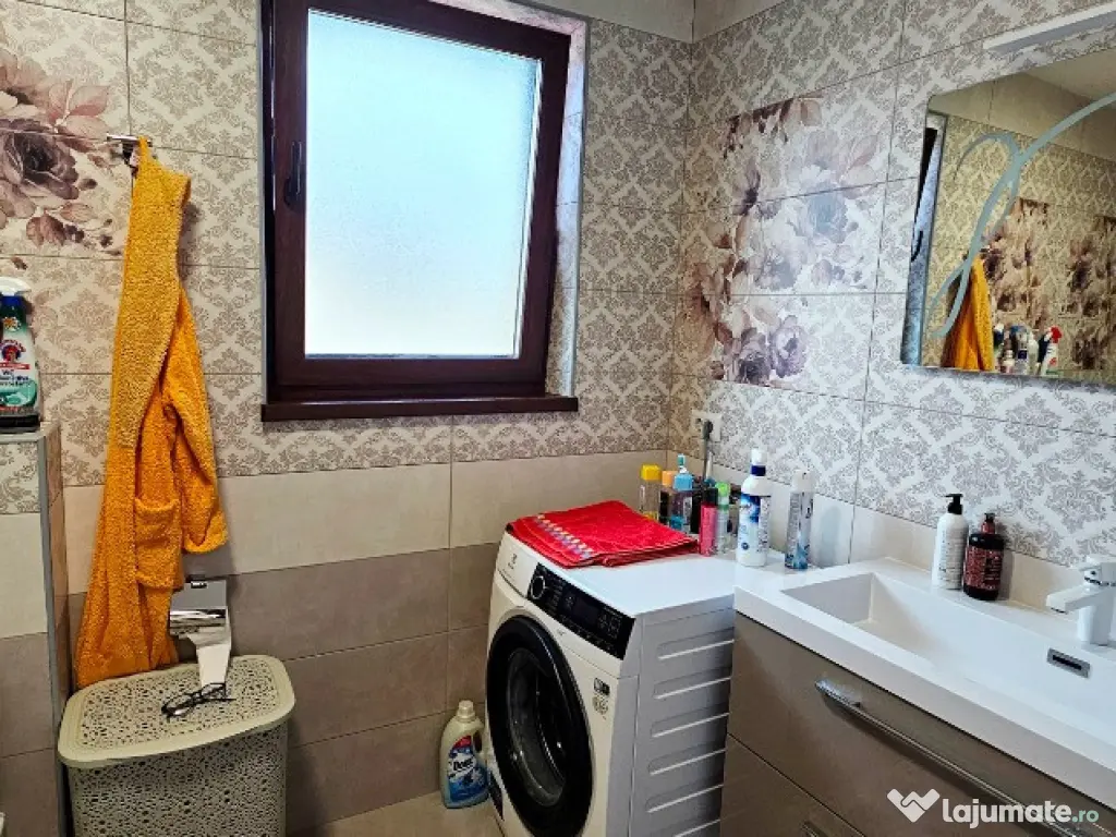 Proprietatea este compusă din suprafața de 300 mp teren, pe care este edificată o casă cu regim de înălțime P+M, cu suprafața utilă de 120 mp, construită în anul 2021, pe fundații din beton armat, zidărie din cărămidă, acoperită cu tablă profilată Wetterbest, izolată exterior cu polistiren EPS80 de 10 cm, adezivi și tencuială decorativă Ceresit, tâmplărie Izotec cu geamuri tripan.