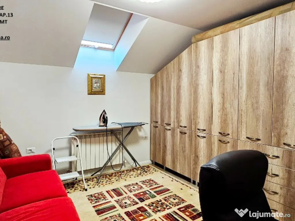 - La mansarda : hol, 3 dormitoare, dressing, balcon și baie.