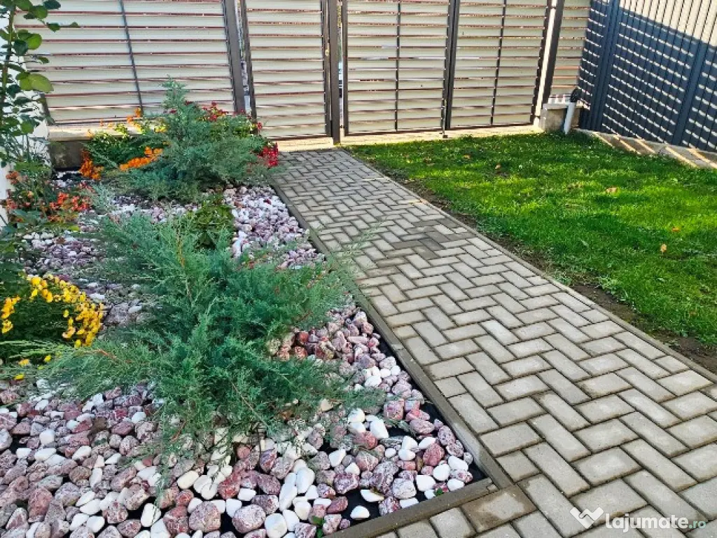 Proprietatea este împrejmuită cu gard metalic, deține o curte frumos amenajată cu alei din pavele, gazon, flori, plante ornamentale, magazie pentru depozitare materiale. Beneficiază de toate utilitățile urbane: apă, curent, gaz metan, canalizare.