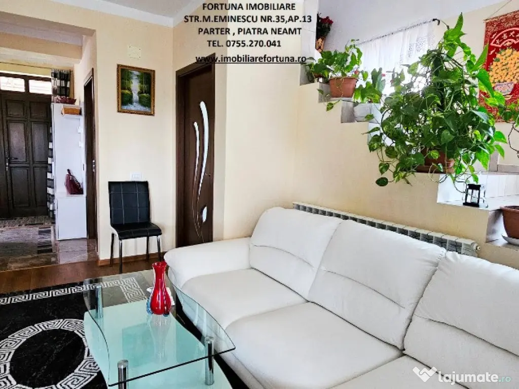 Pentru cei care doresc să se bucure de facilitățile urbane, beneficiind totodată de liniște, verde și aer curat, FORTUNA IMOBILIARE propune spre achiziție această proprietate elegantă, îngrijită, primitoare, compusă din locuință, garaj și teren, situată într-o zonă liniștită, cu un view atractiv, din intravilanul Municipiului Piatra Neamț.