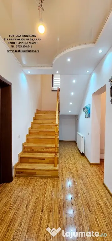 Celor care doresc să se bucure de facilitățile urbane, beneficiind totodată de liniște, verde și aer curat, FORTUNA IMOBILIARE le propune spre achiziție această proprietate elegantă, îngrijită, primitoare, compusă din casa P+M, terasă, garaj și teren, situată în zona 1 Mai din Municipiul Piatra Neamț.