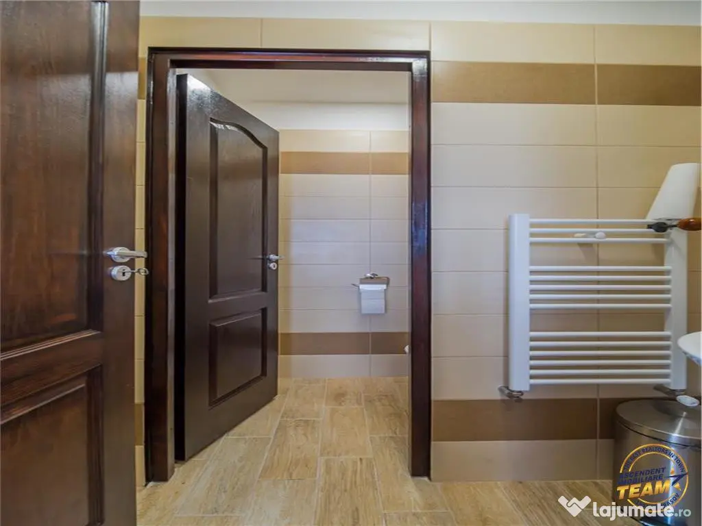 - La Mansarda regasim un antreu generos pretabil pentru activitati de zi si relaxare, trei dormitoare cu baie proprie, un balcon si un studio, format din dormitor, bucatarie mobilata si utilata, baie si dressing. Studioul ne ofera o panorama splendida catre Muntele Tampa.