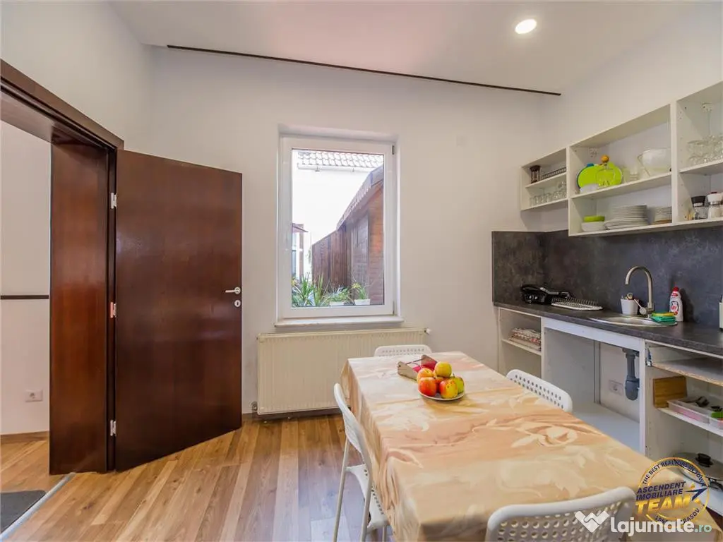 - Intrarea nr. 1 deserveste un spatiu format din doua camere, o incapere principala cu destinatie de spatiu comercial, sau spatiu de birouri, after school, etc care are acces direct din strada, iar cealalta camera, poate fi folosita ca si chicineta, cu acces direct din curte si usa care comunica cu incaperea principala;