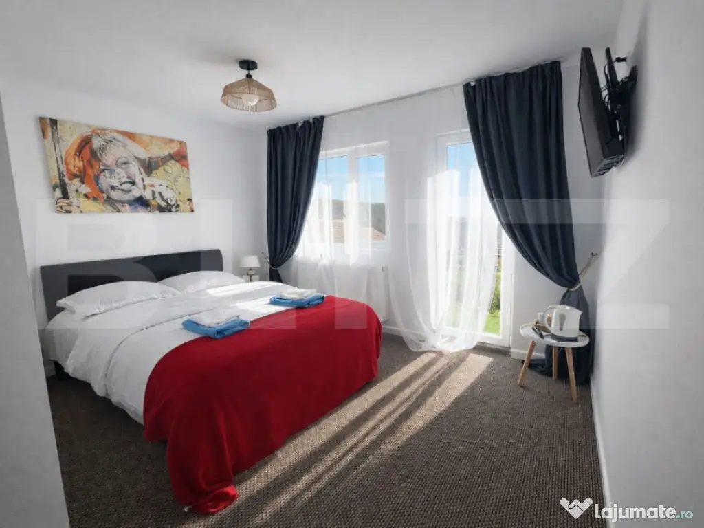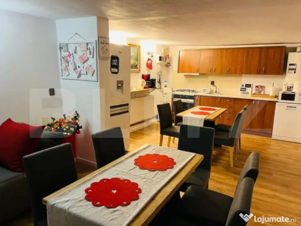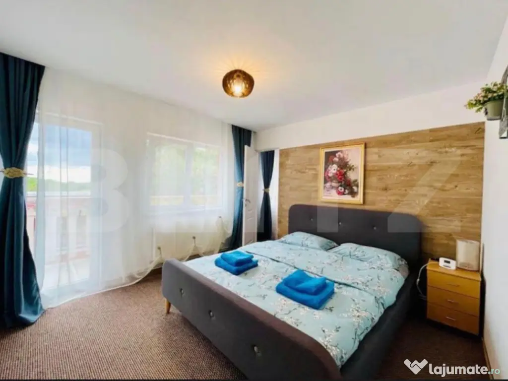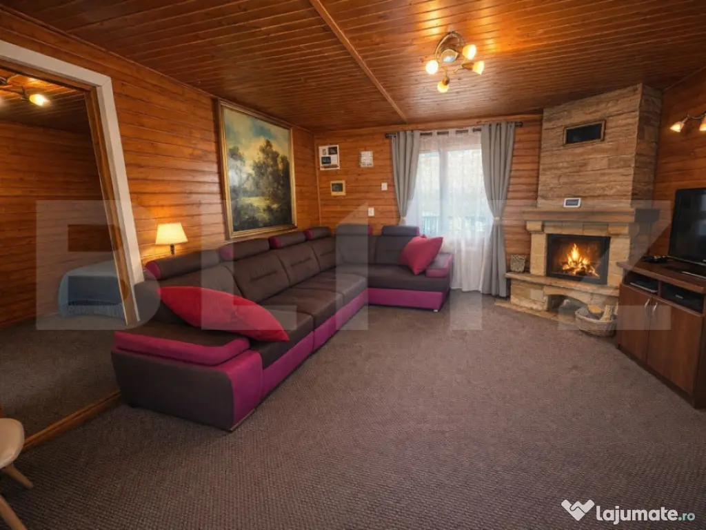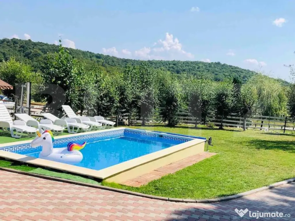 Blitz vă oferă spre vânzare o proprietate deosebita, situată în localitatea Feleacu, într-o zonă liniștită, cu o priveliște superbă și acces rapid către Cluj-Napoca. Proprietatea se afla pe un teren generos de 1582 mp și cuprinde două case individuale, fiind ideală atât pentru locuință personală, cât și pentru investiție sau activitate în regim turistic. Una dintre case are o suprafață de 96 mp și este compartimentată într-un living luminos, un dormitor și o baie, oferind un spațiu confortabil și bine organizat. Cea de-a doua casă are 130 mp și dispune de intrare către bucătărie, iar zona de dormit este compusă din 3 dormitoare cu intrări separate, fiecare având baie proprie, oferind intimitate și funcționalitate. Curtea este amenajată pentru relaxare și timp petrecut în aer liber, proprietatea beneficiind de piscină încălzită, saună, jacuzzi, foișor și zonă de grătar, fiind locul perfect pentru momente de relaxare alături de familie și prieteni. Imobilele sunt dotate cu centrală termică proprie, geamuri și uși din termopan, iar finisajele includ gresie, parchet și mochetă. Casele se vând complet mobilate și utilate, fiind pregătite pentru mutare imediată. În plus, proprietatea dispune de două locuri de parcare, oferind confort și acces facil. Datorită poziționării excelente, terenului generos și facilităților deosebite, această proprietate reprezintă o oportunitate ideală pentru cei care își doresc liniște, natură și confort, la doar câteva minute de oraș. Cod ofertă / ID BLITZ: P167142 Id intern: P167142 Număr Băi: 4 Curent Apă Canalizare Gaz