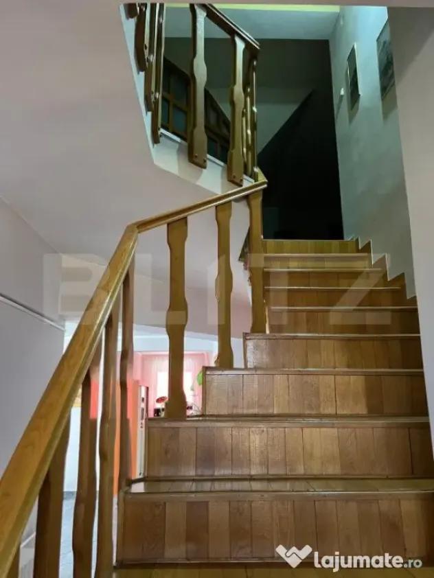 Garaj: parcare pentru 2 autoturisme, cu plaseu de beton și mansardă semifinisată, accesibilă urcand pe scări de beton.