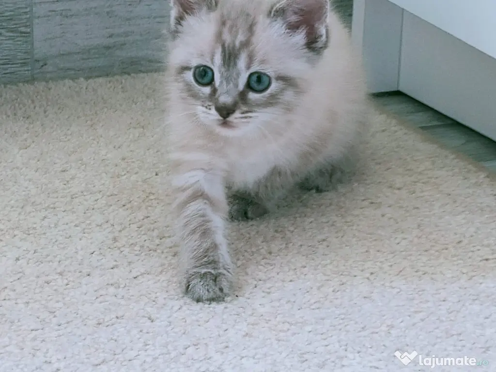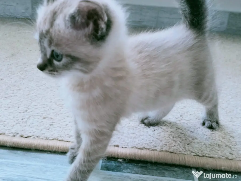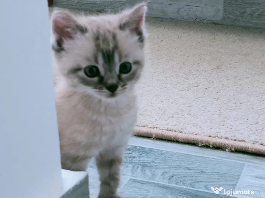 Este o fetiță de aproximativ 7 săptămâni, pe nume Lola.
