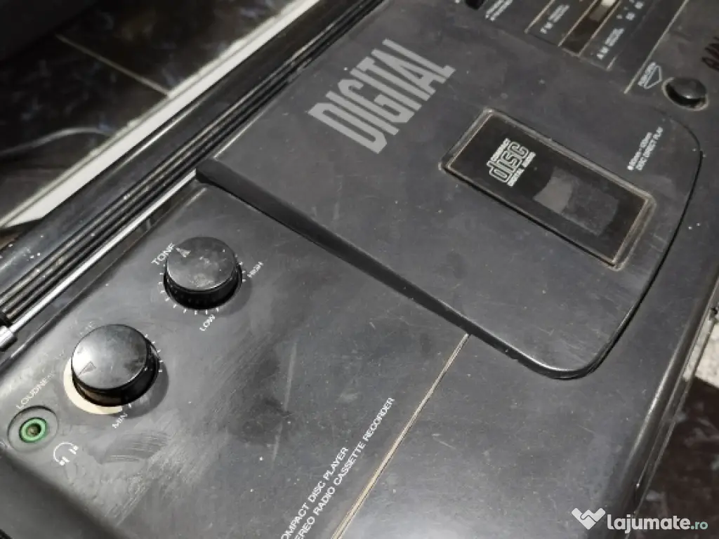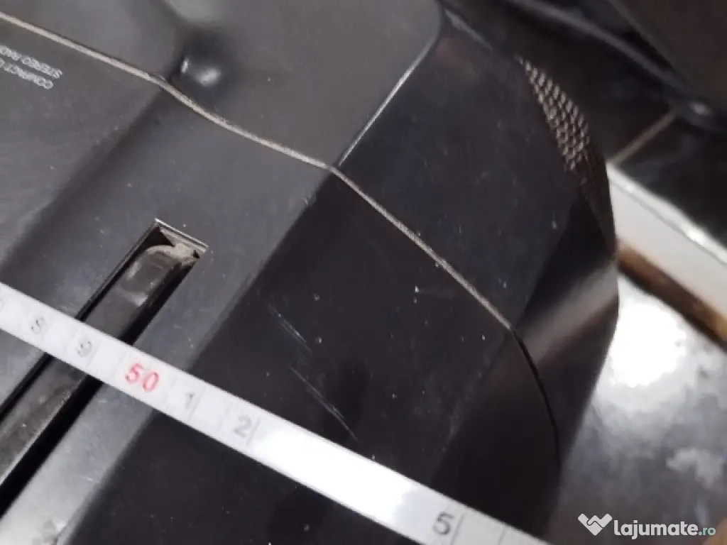 Vând combina audio stereo Profitronic coreeană, radio FM stereo și AM funcționează. CD nu învârte discul casetofonul deck 2 funcțional. Boxe incorporate de bass. Lungimea 52cm. Utilizat.