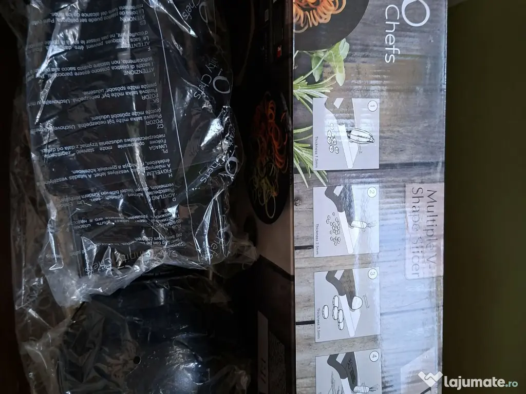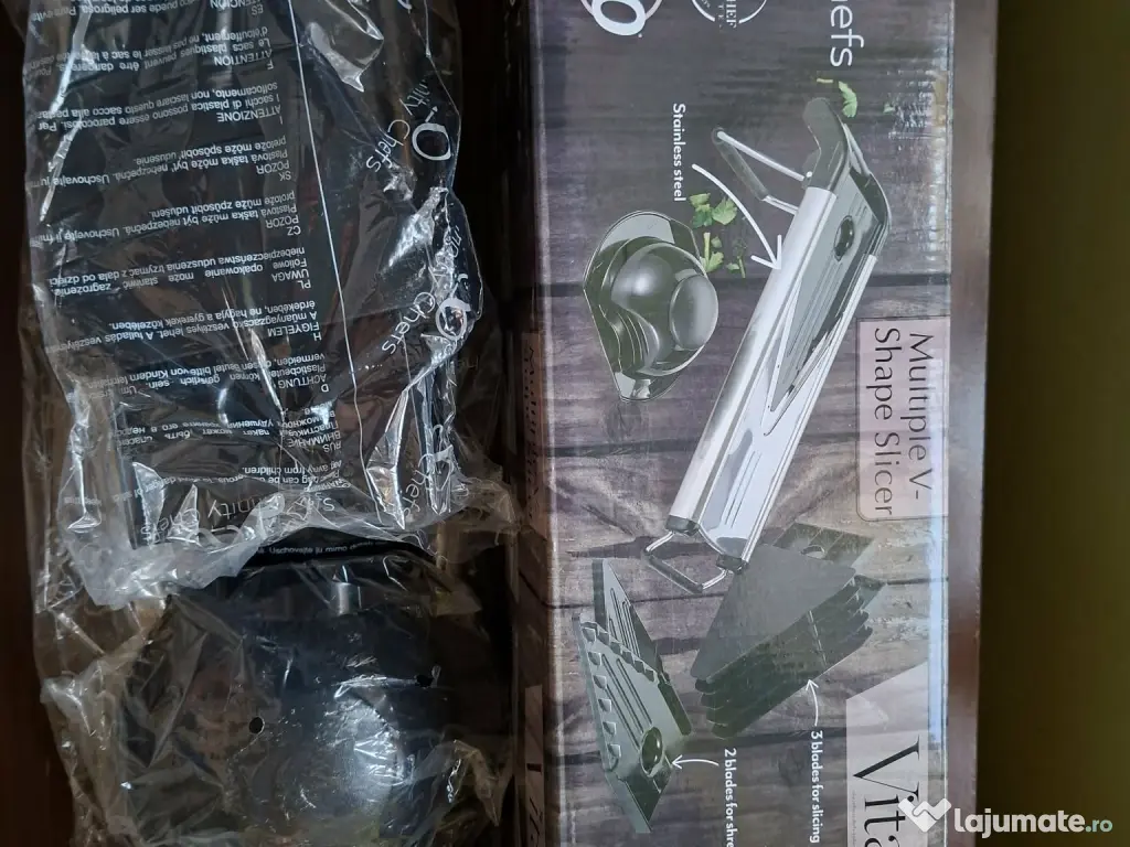 Razator legume multifunctional - Infinity Chefs, Multiple V-Shape Slicer, nou, in ambalajul original, nu a fost folosit niciodata. Din inox, lama 3 piese pentru taiat bucati si lama 2 piese pentru maruntit.