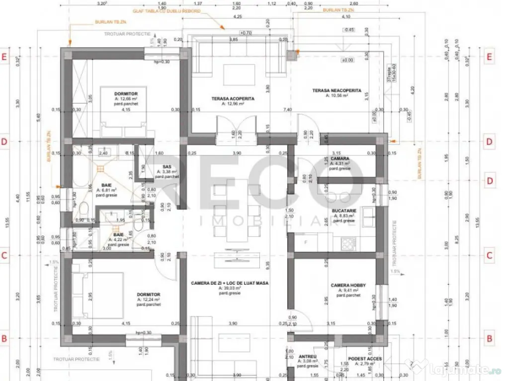 RECO Imobiliare va propune spre vanzare: #ND77 Casa noua la gri, situata la 6 km de Oradea , localizata in satul Cihei, comuna Sanmartin, la doar 3,5 km de centura orasului. Locuinta masoara 110 mp utili si este compusa din: hol de acces, living, bucatarie, trei dormitoare, doua bai, terasa generoasa acoperita Constructia este din caramida cu planseu de beton 15 cm Suprafata teren: 502 mp Suprafata construita: 149 mp Suprafata utila 110 mp PRET: 119500 Euro, neg. Pentru mai multe detalii si vizionari, va stam la dispozitie. TEL: 0376 443 700