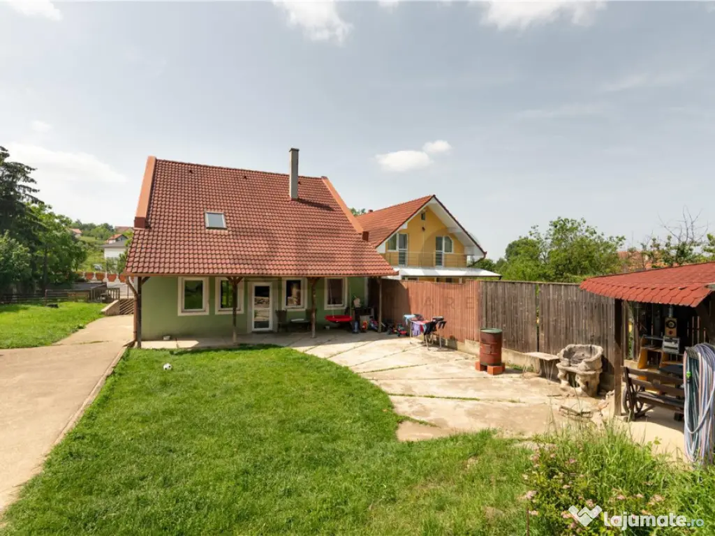 RECO IMOBILIARE VA OFERA SPRE VANZARE IN EXCLUSIVITATE #DM70 CASA DUBLA cu teren generos si priveliste superba in zona Spitalul TBC. Doua case pe un teren generos ideal pentru doua generatii- cu posibilitate de vanzare separata. Prima casa este construita in stil rustic, parter si etaj cu compartimentare: Parter: Antreu Living cu bucatarie open space 2 dormitoare Baie de serviciu 2 terase Etaj: Living 2 dormitoare Baie. Casa 2 constructie moderna- plan parter-semifinisat: Living open space cu bucatarie 3 dormitoare Baie Camara Exterior: Acces auto, garaj, foisor, vegetatie matura, pomi fructiferi, pomi tecorative, anexe de depozitare, foraj put apa. Supfarata teren: 2778 mp C1: Suprafata construita : 200mp Suprafata utila: 160 mp C2: Suprafata construita : 127.1mp Suprafata utila: 101.68 mp Pret: 530.000 Euro negociabil 0% Comision Telefon: 0376443700 Număr Băi: 3 Comision cumpărător: 0%