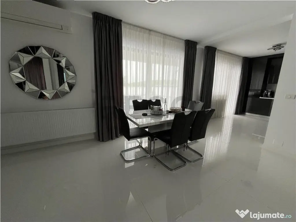 RECO Imobiliare va propune spre vanzare: #ILS94 Vila impresionata situata intr-o zona rezidentiala exclusivista, pe o strada foarte linistita, lipsita de trafic si poluare, in zona de dealuri a orasului Oradea, la 7 minute de Centrul Comercial Crisul si la 5 minute de Drumul Expres -str. Ecaterina Teodoroiu, drum care asigura conectivitatea la toate punctele de interes ale orasului. Casa este construita in 2018, este foarte spatioasa si se afla pe un teren de 798 mp. Este dispusa pe 2 nivele ( P E) si cuprinde parterul compus din hol generos care face accesul catre toate incaperile casei, zona open-space cu living generos, bucatarie integrata si loc de luat masa, dormitor, baie, garaj pentru 2 masini. De asemenea vila beneficiaza de inca o bucatarie complet mobilata si utilata si o piscina interioara unde va puteti bucura de placerea inotului oricand doriti. Spre deosebire de piscinele traditionale cu clor, aceasta piscina are sistem de purificare prin sare. Accesul la nivelul superior se face pe o scara spectaculoasa, placata cu granit negru indian de cea mai inalta calitate si inconjurata de un panou de sticla. Etajul cuprinde 2 dormitoare, birou generos, sala de sport si baie. Va invitam sa descoperiti farmecul acestei propietati! Suprafata teren 798 mp Suprafata utila 290 mp Toate utilitatile (curent, apa, canalizare, gaz) sunt pe propietate. PRET: 565 000 Euro Pentru mai multe detalii si vizionari, va stam la dispozitie. ID intern: 4557. TEL: 0376 443 700 . Număr Băi: 2 Posibilitate parcare: Da Nr. locuri parcare: 3 Apă Canalizare Gaz