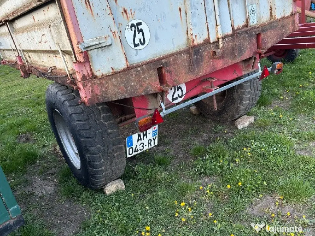 Vând remorcă basculabila 7.5 tone adusă frâna hidraulică acte carte anvelope noi dimensiuni 4x2x0.9 ml transport la nevoie preț 6800 euro info 0753—682—936 Marcă: Alta Model: Monoax basculabila An fabricație: 2010