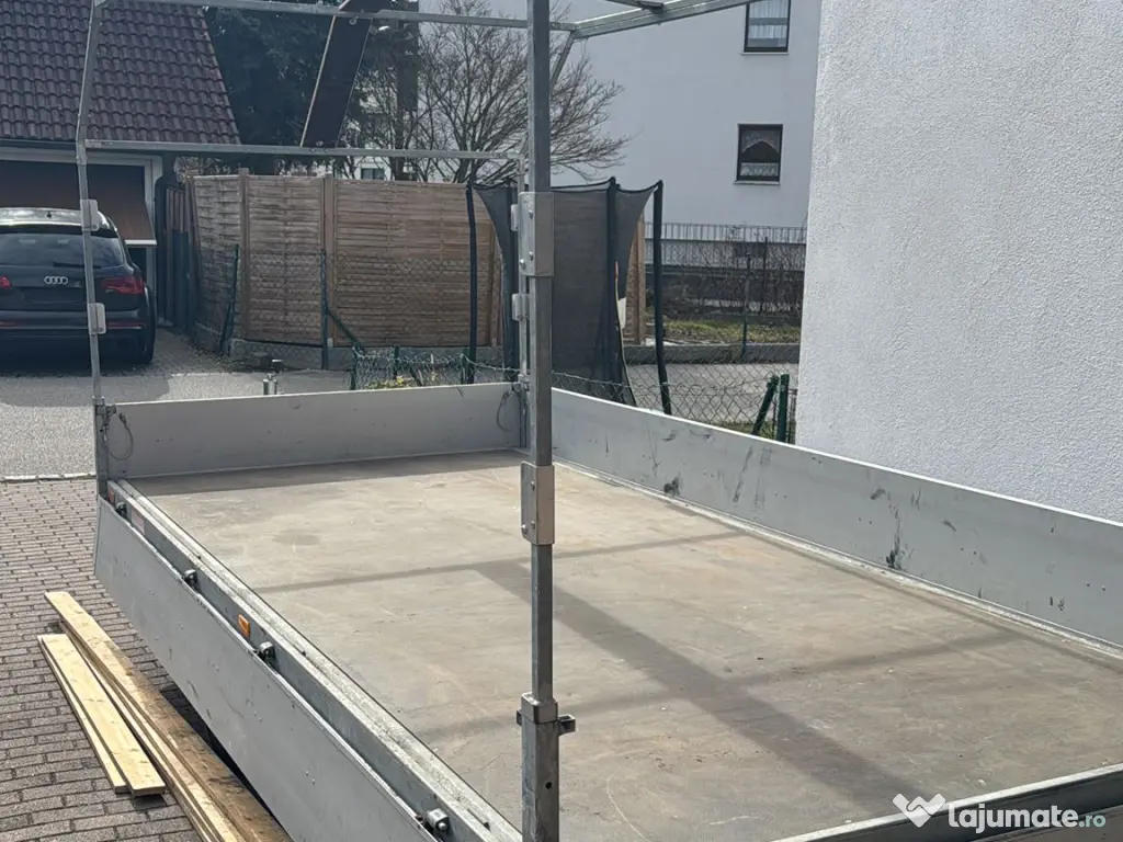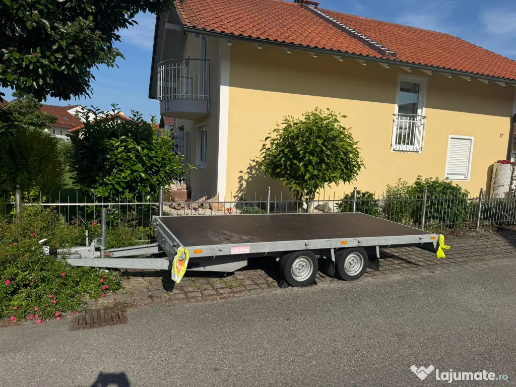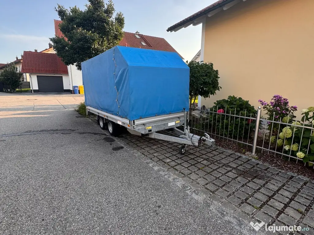 De vânzare remorcă dublu ax, foarte solidă și bine întreținută, ideală pentru transport mărfuri, echipamente, materiale de construcții sau alte sarcini de lucru. Remorca este robustă, stabilă și gata de utilizare imediată.