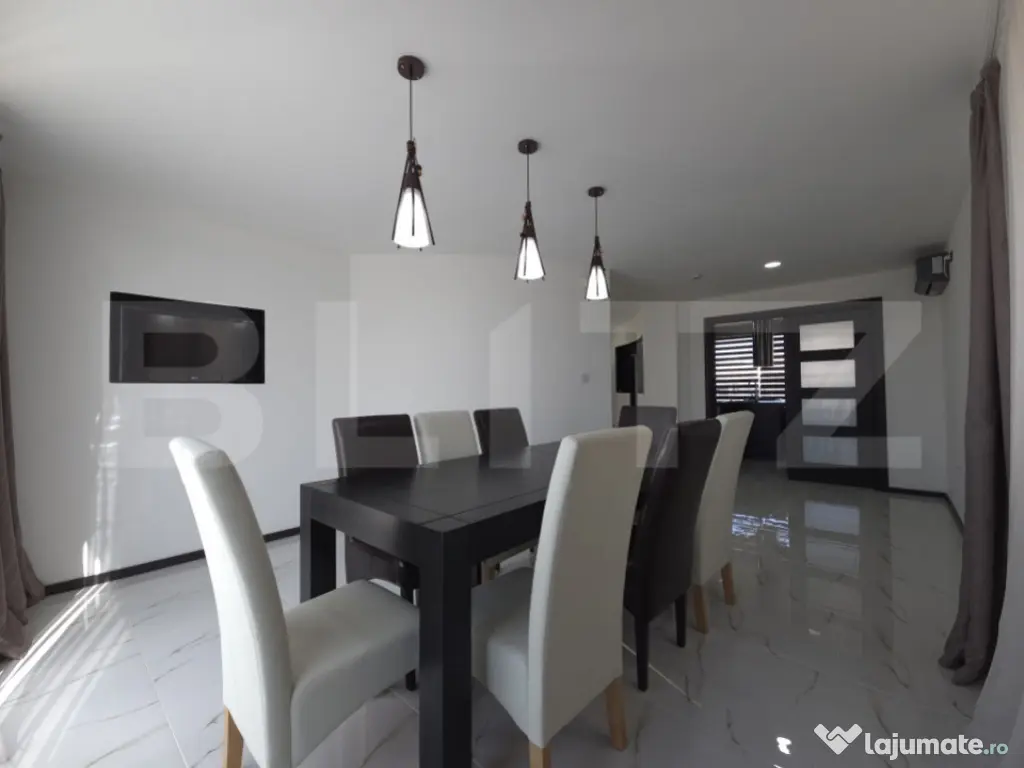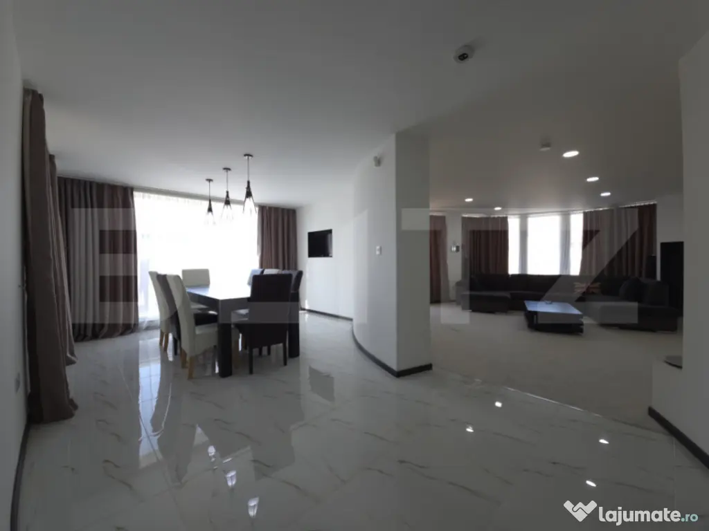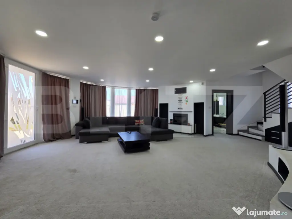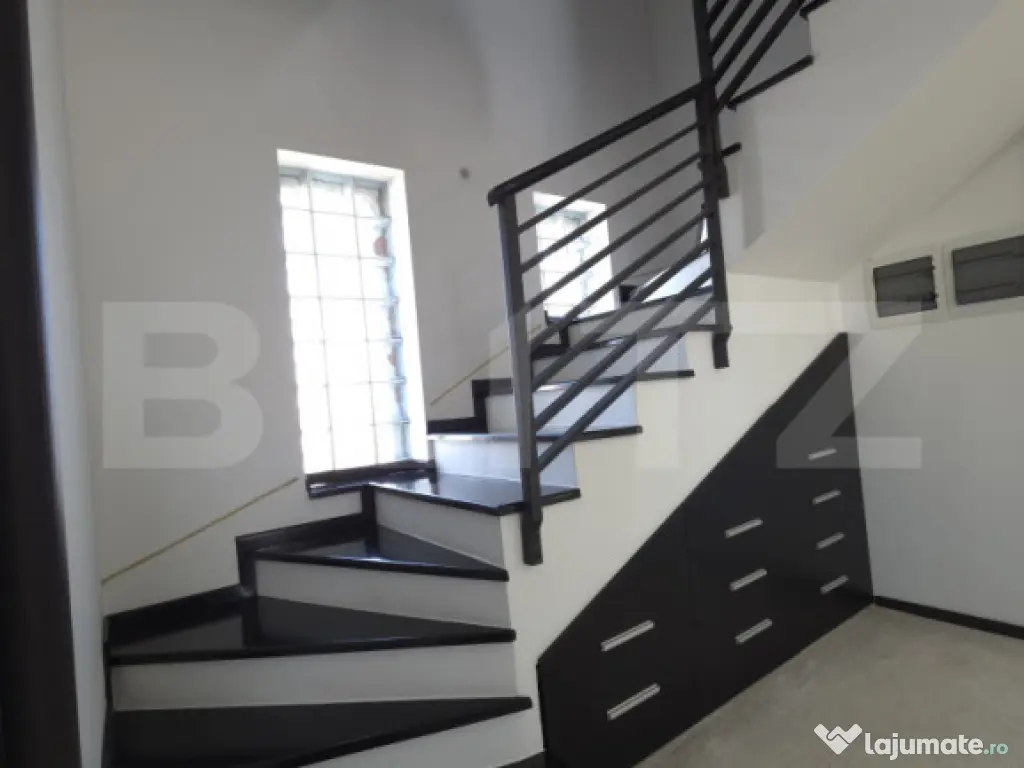 Vă propunem spre închiriere un imobil de excepție, ideal pentru companiile care doresc să își desfășoare activitatea într-un mediu care inspiră profesionalism, inovație și succes. Această vilă cu arhitectură modernă și vitraje generoase oferă un echilibru perfect între funcționalitatea unui spațiu de birouri și prestigiul unei reședințe de protocol. Situată în zona rezidențială Matraca-Ulmi, proprietatea beneficiază de un teren vast de 1.276 mp, oferind o prezență stradală impunătoare și posibilități multiple de organizare. SPAȚII FUNCȚIONALE ȘI COMPARTIMENTARE BUSINESS Cu o suprafață desfășurată de 296 mp, clădirea (P+2) este structurată pentru a răspunde nevoilor diverse ale unei organizații: Parter (Zonă de Recepție și Protocol): Un open-space luminos ideal pentru recepție sau showroom, completat de o zonă de dining dedicată (perfectă pentru protocol sau întâlniri de business). Bucătăria este complet închisă și utilată, servind drept zonă de relaxare și socializare pentru echipă. Etaj 1 (Zonă de Working): Trei încăperi spațioase ce pot fi utilizate ca birouri individuale sau departamentale, fiecare având acces la balcoane proprii, oferind angajaților un mediu de lucru aerisit și plăcut. Etaj 2 (Zonă de Management & Event): Un nivel superior versatil, ce include o zonă de bar privată, ideală pentru seminarii, prezentări de produse sau întâlniri informale de tip "happy hour" cu partenerii de afaceri. AVANTAJE COMPETITIVE ȘI DOTĂRI DE TOP (Standard 2026) Imobilul este echipat cu tehnologii ce optimizează randamentul afacerii dumneavoastră: Eficiență Financiară: Sistemul de panouri fotovoltaice de ultimă generație asigură independența energetică, reducând costurile operaționale cu utilitățile la un nivel simbolic – un avantaj major pentru sustenabilitatea financiară a sediului. Confort și Infrastructură: Încălzire în pardoseală pentru un climat interior optim și izolație exterioară performantă. Clădirea este construită din BCA, oferind o structură solidă și o acustică excelentă. Securitate și Logistică: Accesul este securizat prin porți electrice automatizate, iar perimetrul este protejat de un sistem de alarmă avansat. Forma terenului și deschiderea mare permit amenajarea unei parcări private generoase în curte. Spațiu Exterior: Curtea de 1.276 mp include o zonă de grătar și relaxare, oferind echipei dumneavoastră un spațiu ideal pentru pauze sau evenimente corporate în aer liber. LOCAȚIE STRATEGICĂ Poziționată la intrarea în municipiul Târgoviște, locația asigură o conexiune rapidă cu principalele noduri comerciale și administrative, oferind în același timp angajaților și clienților un mediu de lucru liniștit, ferit de aglomerația urbană, cu posibilități de parcare facilă la frontul stradal. CONDIȚII DE ÎNCHIRIERE Imobilul se închiriază complet mobilat și utilat, fiind pregătit pentru o mutare imediată. Este soluția ideală pentru sedii de companii IT, clinici medicale, case de avocatură, agenții de creație sau instituții educaționale care caută un spațiu reprezentativ. Cod ofertă / ID BLITZ: P166340 Id intern: P166340 Suprafaţă totală: 296 m² An finalizare construcție: 2008 Stadiu construcţie: Finalizat Clasă birouri: C Nr. locuri parcare: 2 Tip imobil: Bloc de apartamente